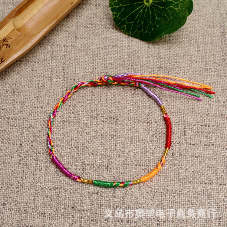 Colorful Rope Bracelet Dragon Boat Festival Hand-Woven Colorful Wire Five-Color Line Bracelet Wrist String Couple Bracelet Men and Women Wholesale 中文版