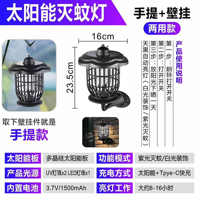 solar mosquito lamp outdoor courtyard lawn mosquito trap lamp household electric shock type mosquito-lured lamp floor outlet wall hanging mosquito killing lamp 中文版