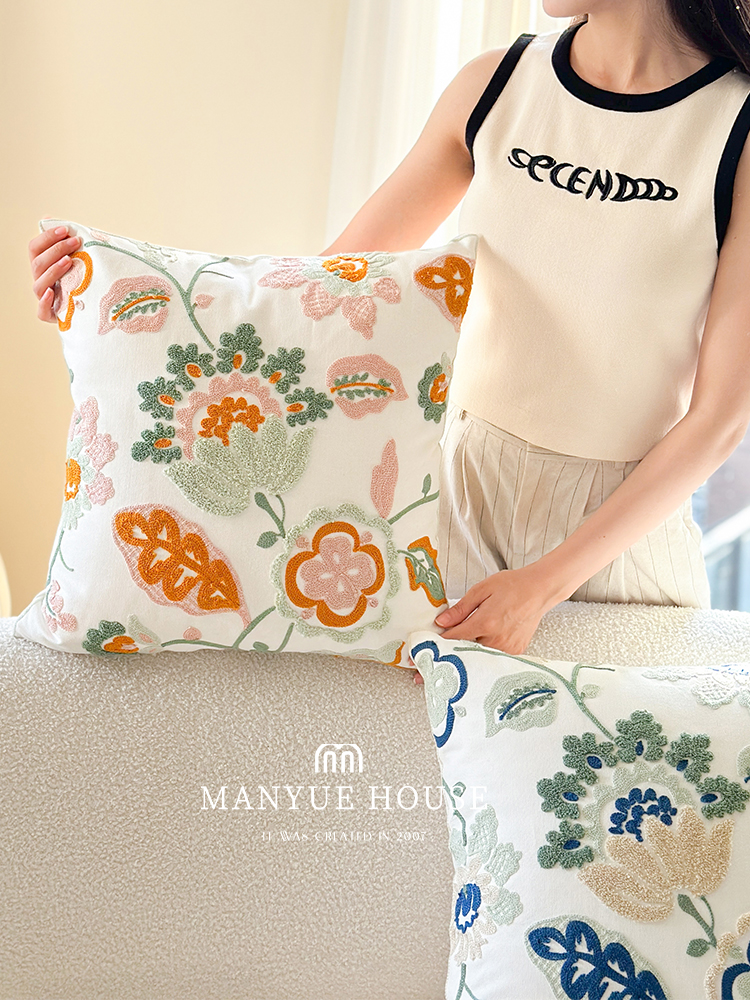 Jujia Nordic Ins Cotton Embroidered Sofa Cushion Tatami Pillowcase with Core Waist Pillow Bedside Backrest