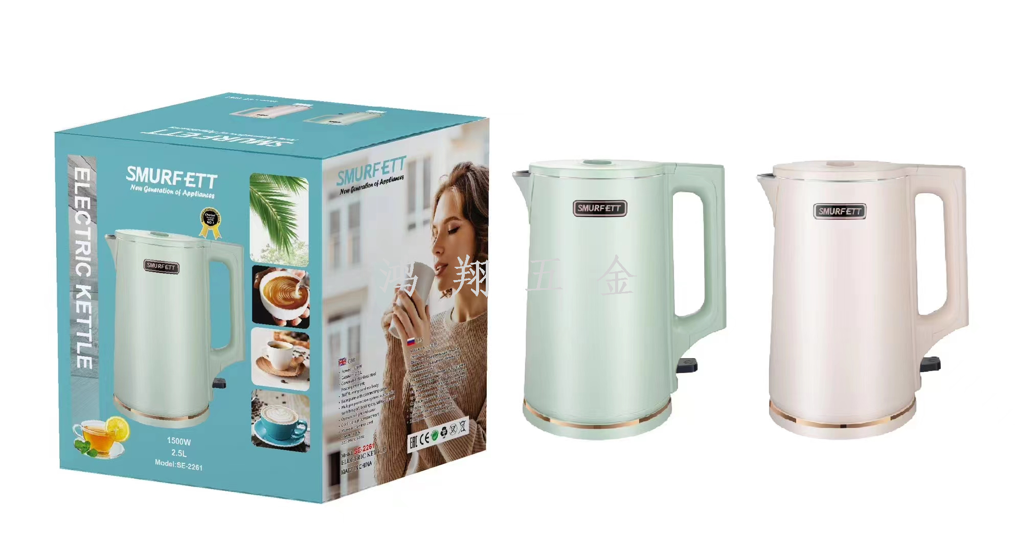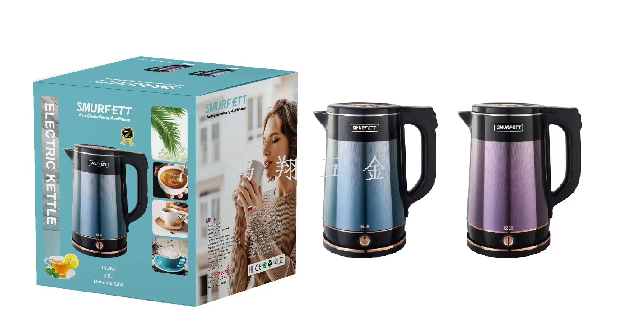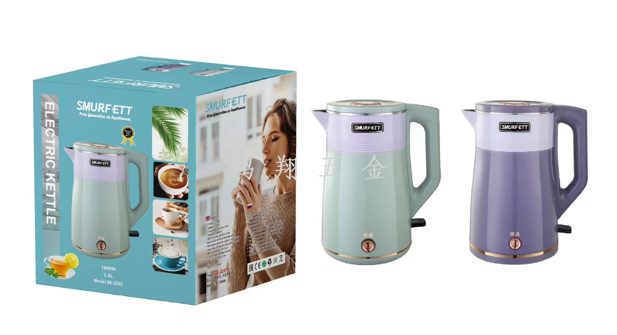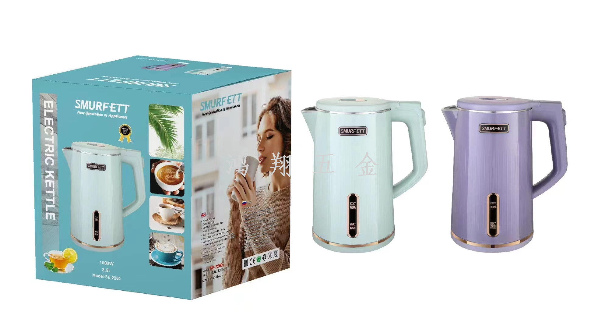 smurfett kettle home appliance electrical kettle insulation integrated heating boiling water stainless steel electric kettle multi-style 中文版