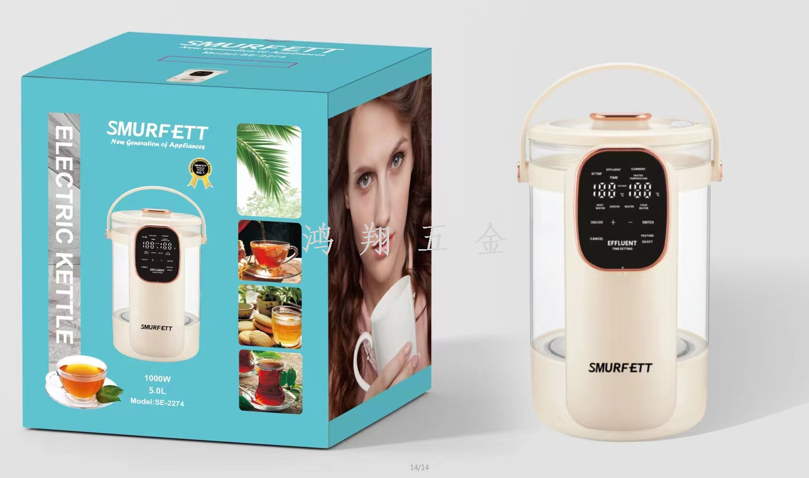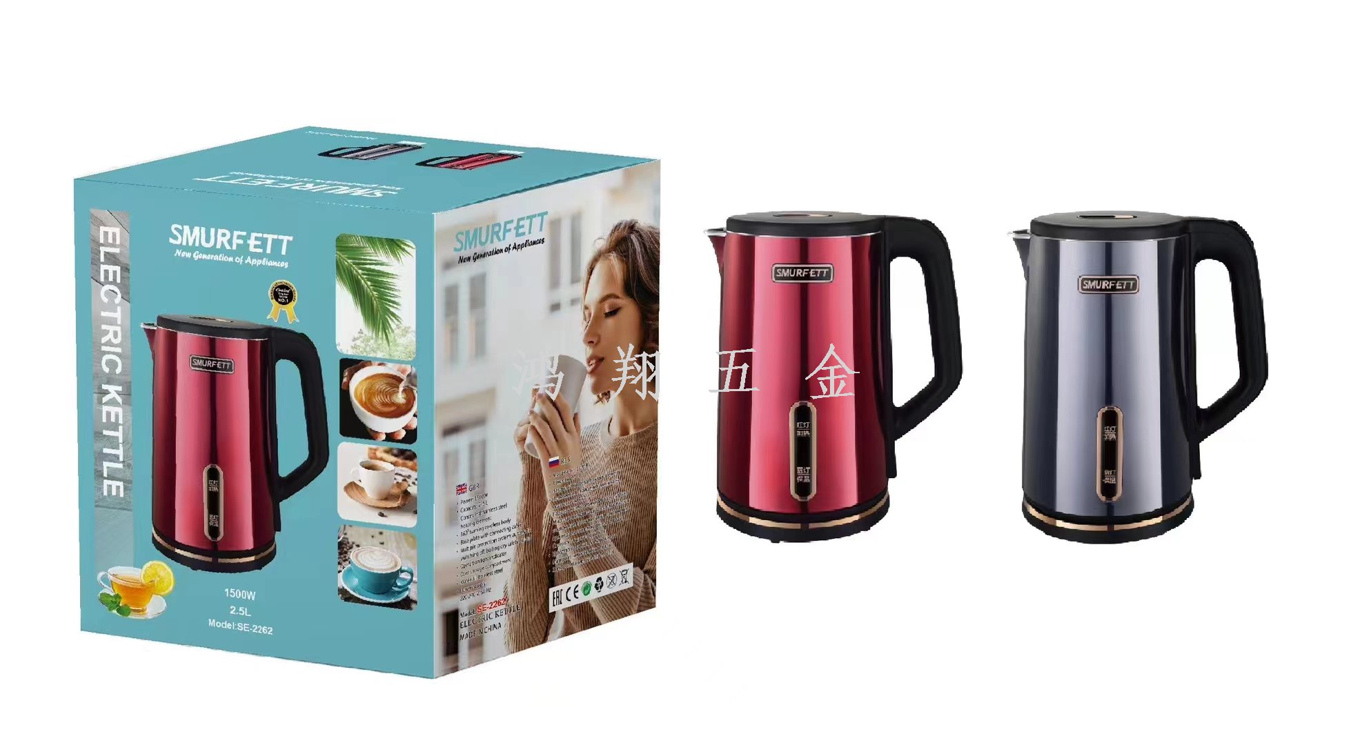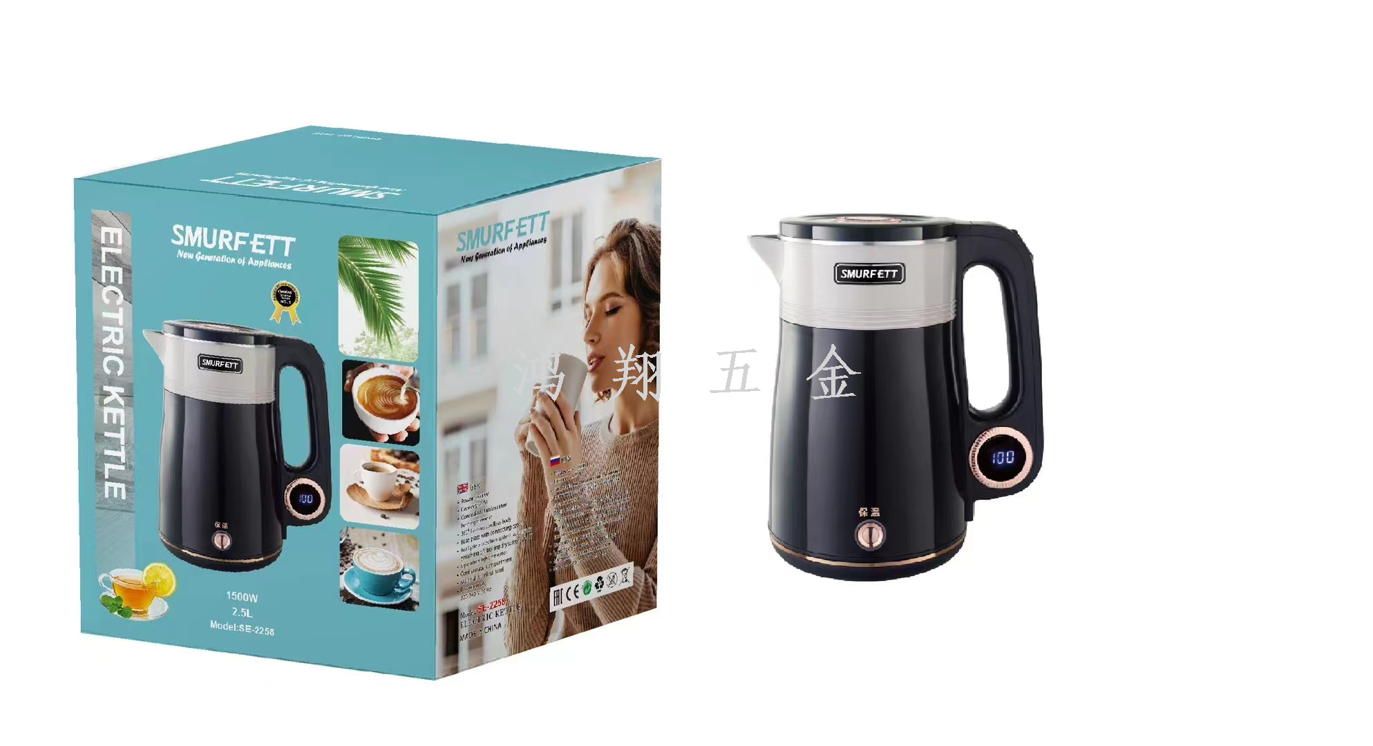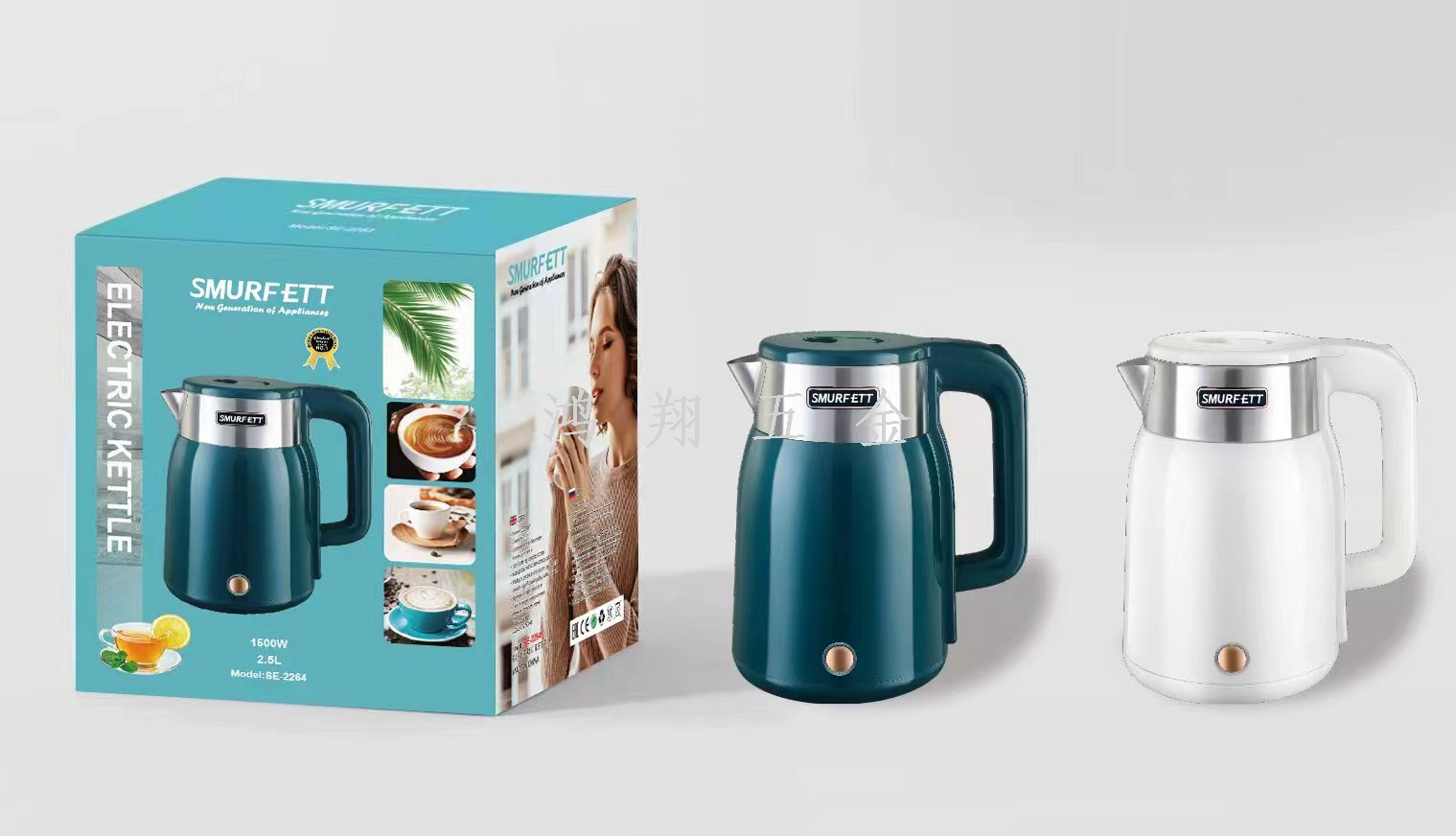 smurfett kettle home appliance electrical kettle insulation integrated heating boiling water stainless steel electric kettle multi-style 中文版