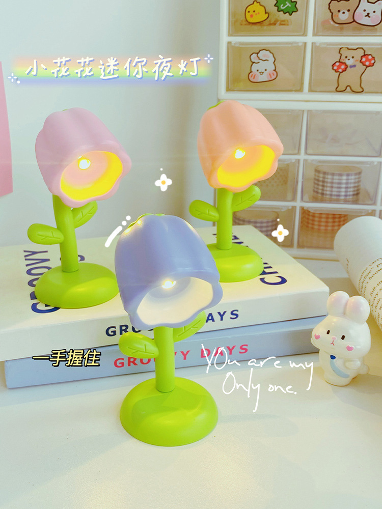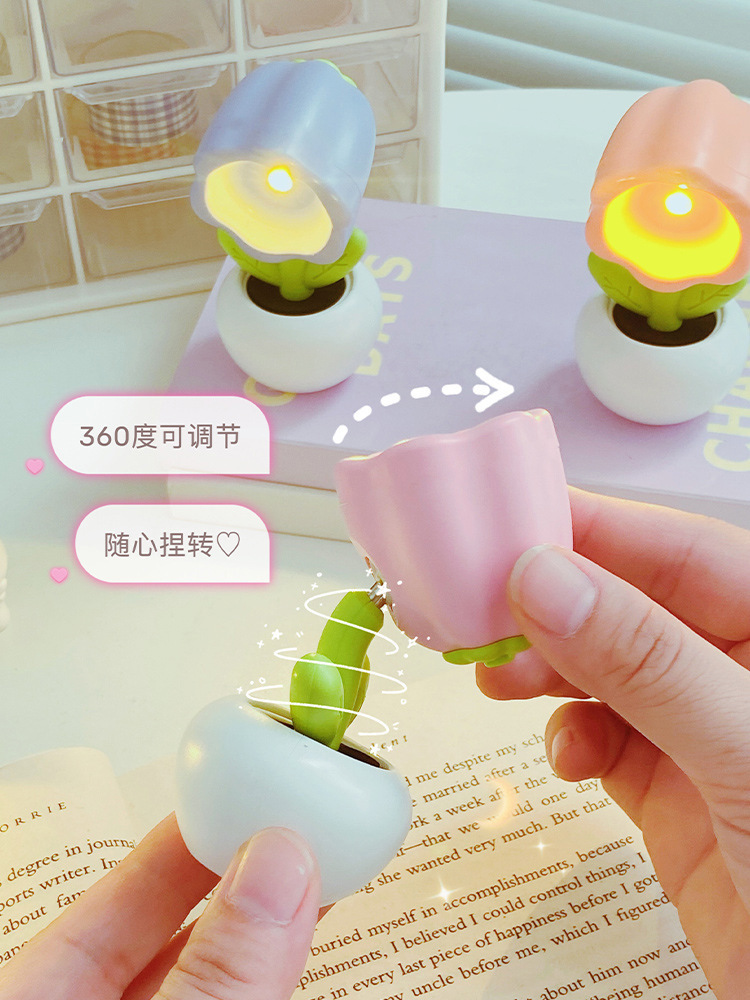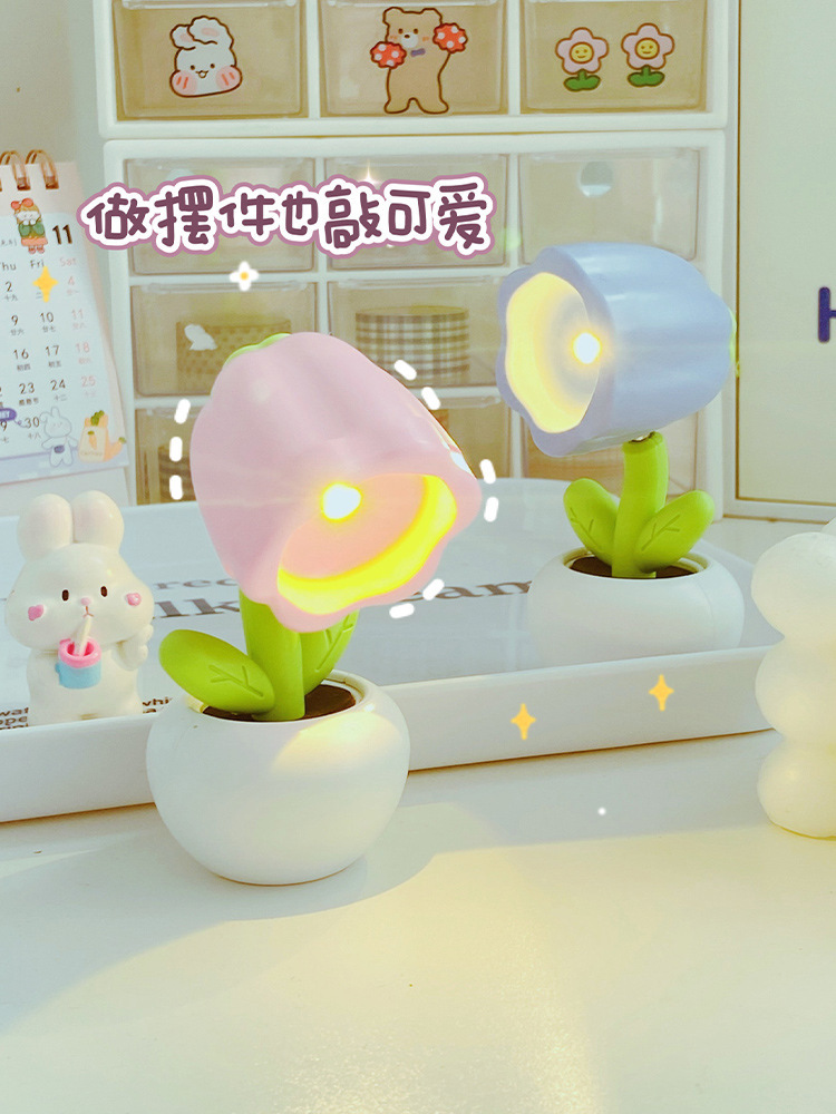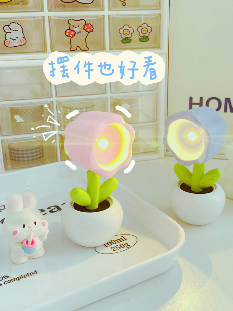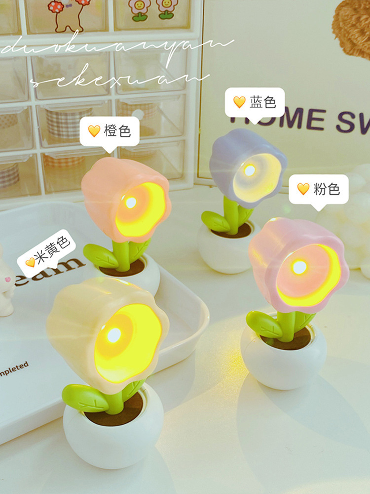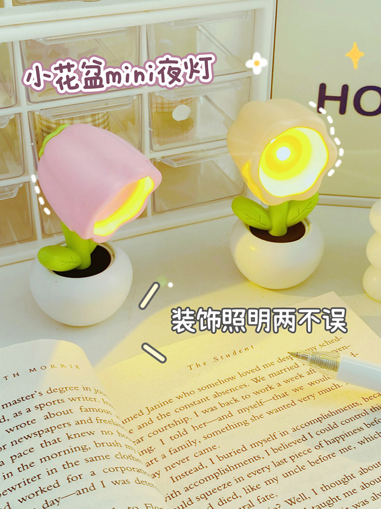 Small Flower Pot Mini Small Night Lamp Cute Ornaments Desktop Cute Ins Table Lamp Girl Heart Children Gift