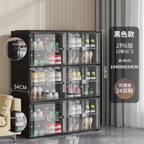 installation-free shoe cabinet folding home doorway dust-proof space-saving large capacity shoe rack transparent visual grid shoe box 中文版