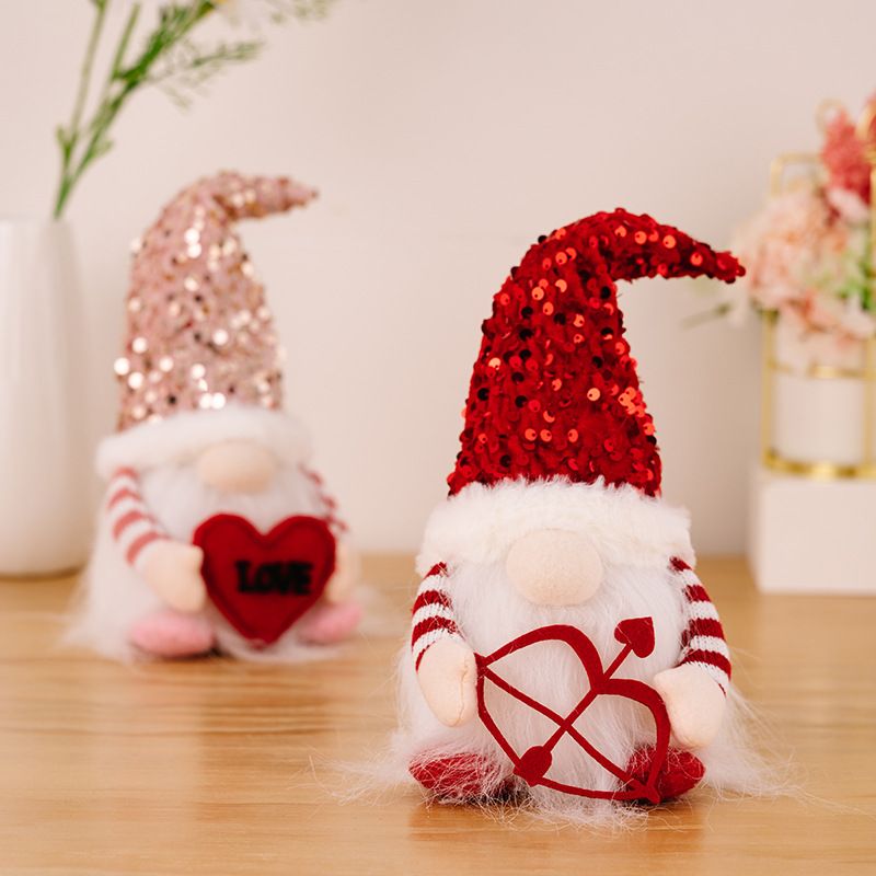 Amazon Hot Selling Product Valentine's Day Decorations Luminous Faceless Doll Ornaments Sequins Ground Essence Doll Gift