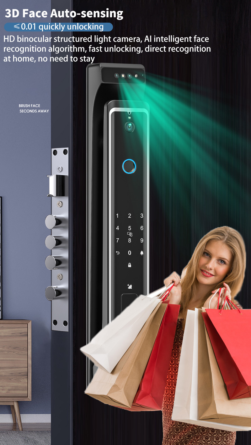 3D Face Recognition 0.01 Second Unlocking/4.5-inch High-definition Screen/AI Intelligent Camera/12-megapixel Camera/Night Vision Infrared/Import Chip/Stainless Steel Lock Body/5200mAh Large Capacity Battery/Salt Fog Test 120 Hours, Corrosion-resistant