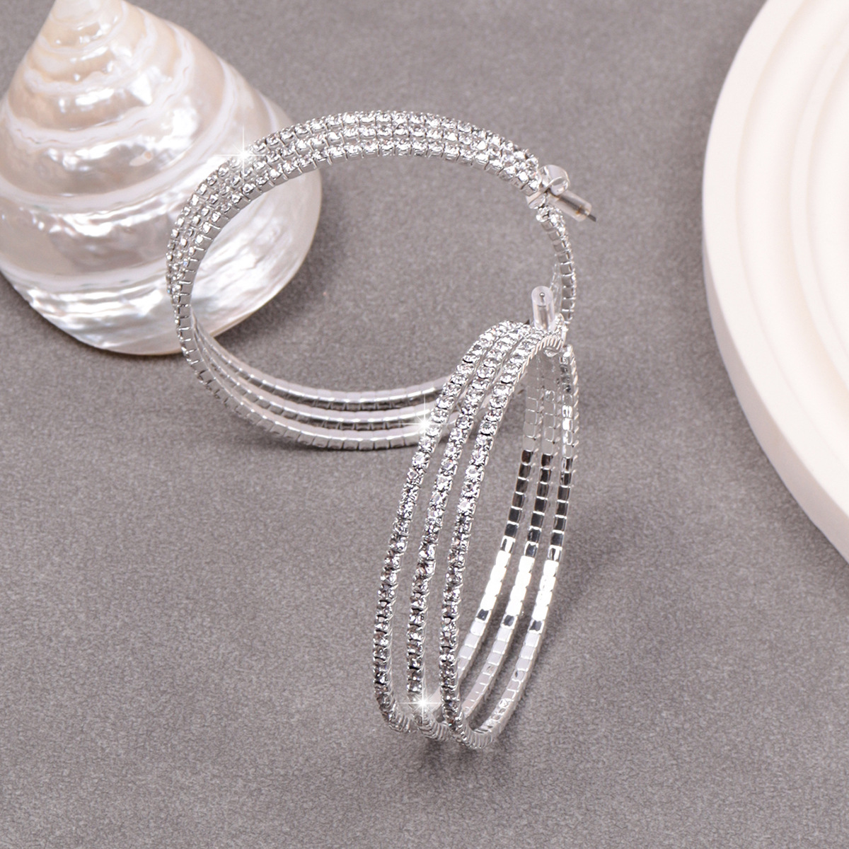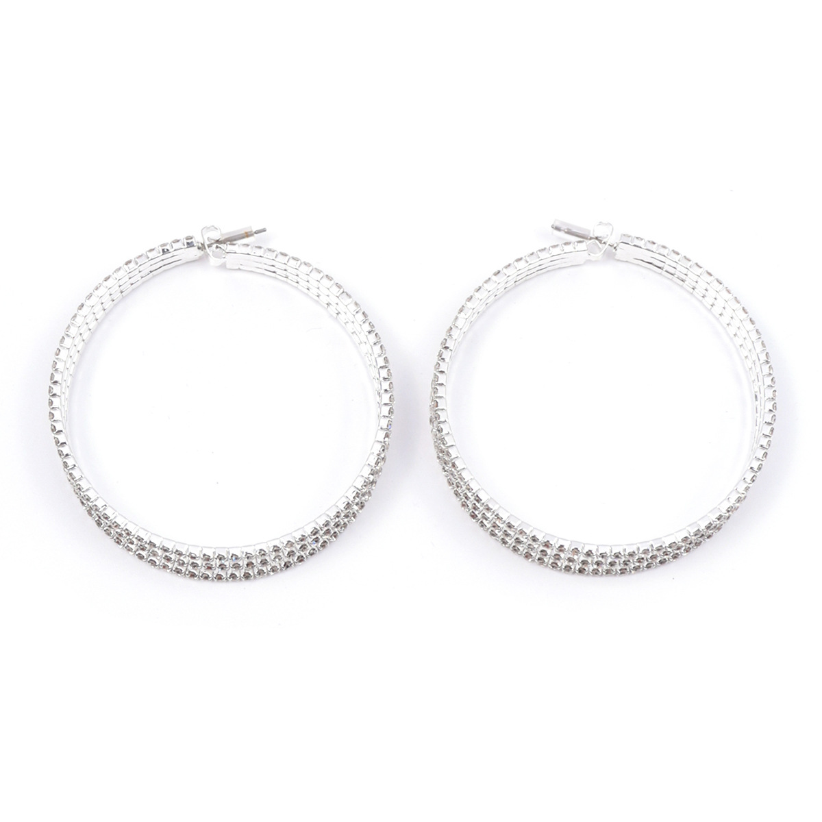 a pair of european and american fashion cool earrings alloy diamond-embedded craft popular round large hoop earrings bridal earrings