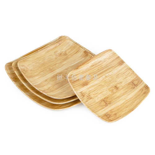 Imitation Wood Grain Melamine Square Plate Imitation Porcelain Tableware Cold Dish Fast Food Restaurant Dinner Plate 中文版