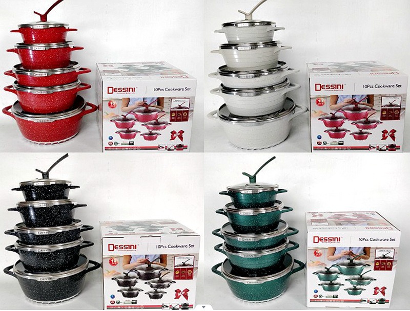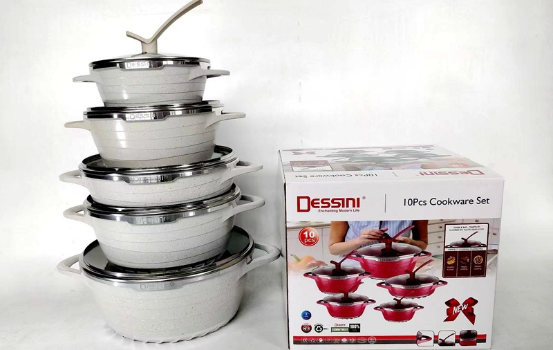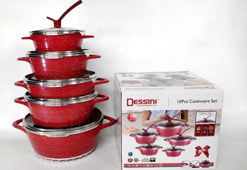 10-piece set of stand lid pointed non-stick pan die casting aluminum pot pot set soup pot set 中文版