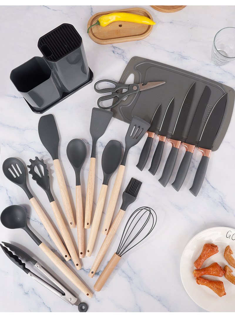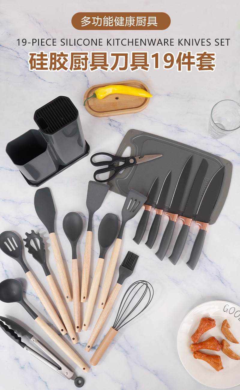 silicone kitchen spatula soup spoon 19-piece non-stick pan silicone shovel knives cross-border silicone kitchenware set wholesale