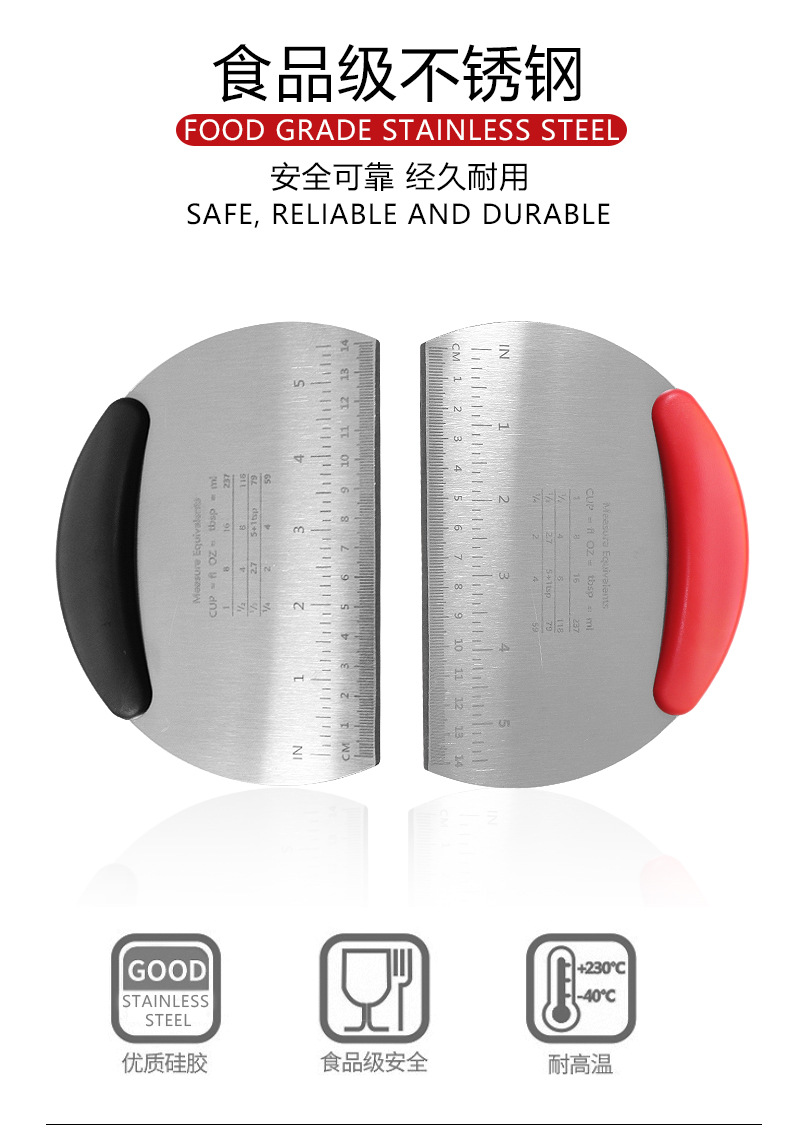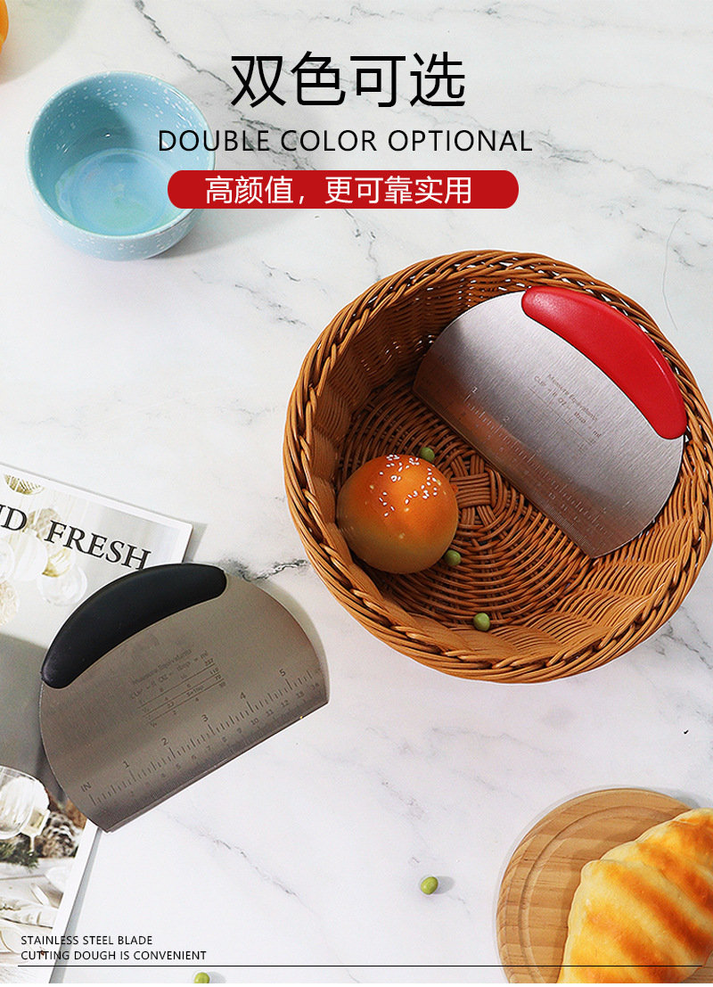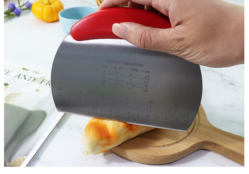 stainless steel dough scraper semicircle with scale flour scraper cake bread cutter baking dough dough scraper wholesale