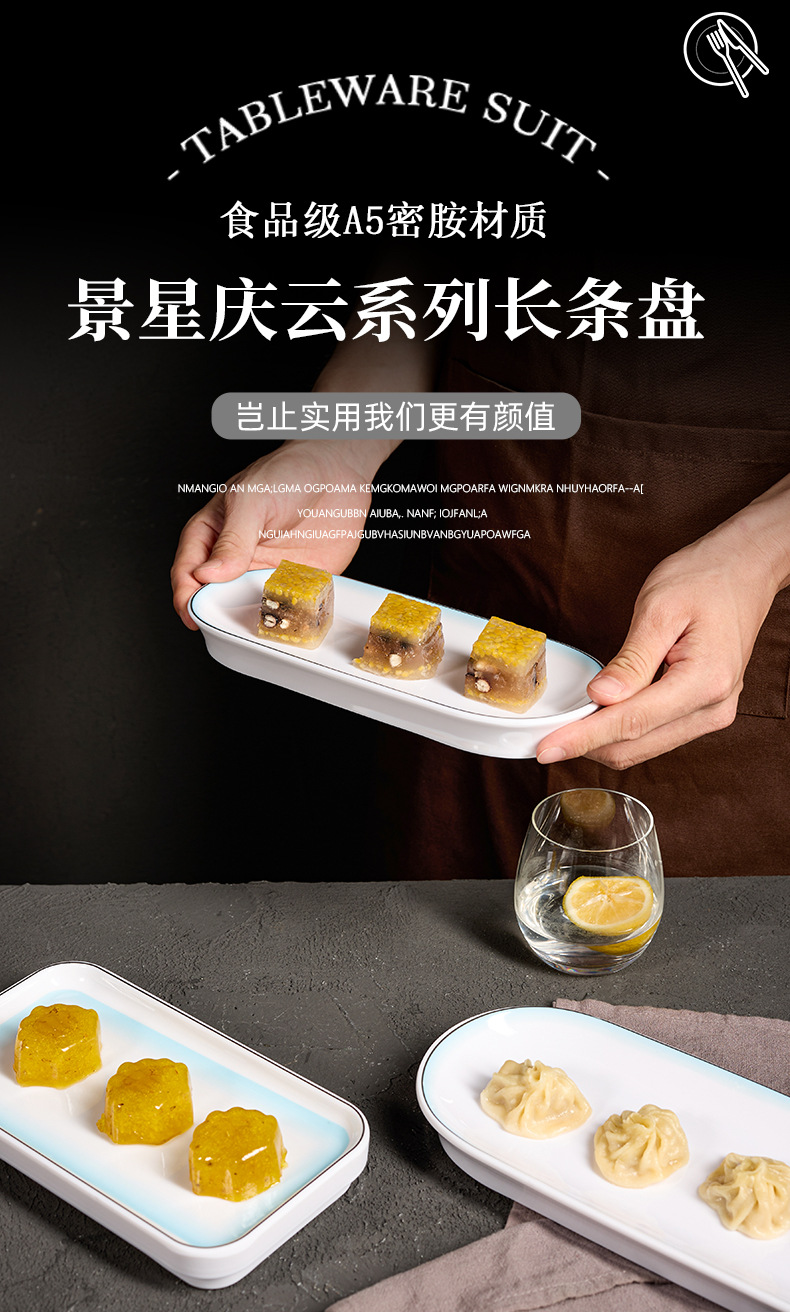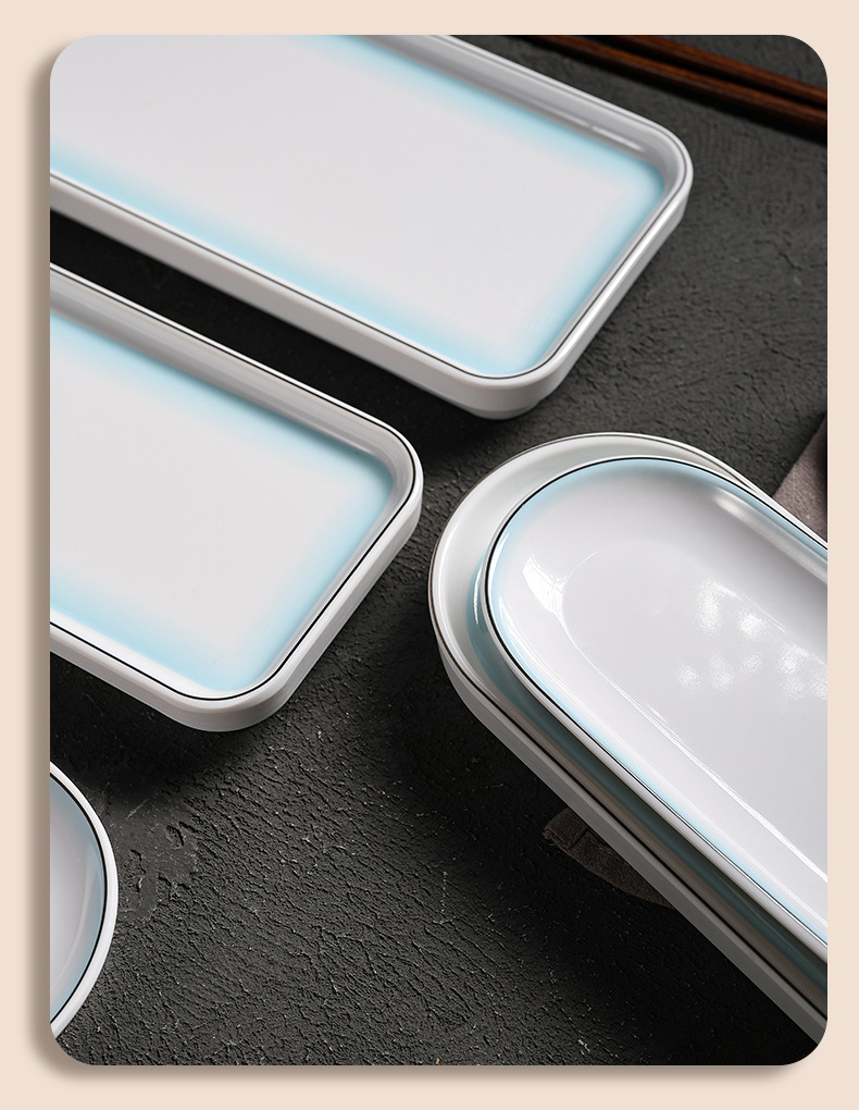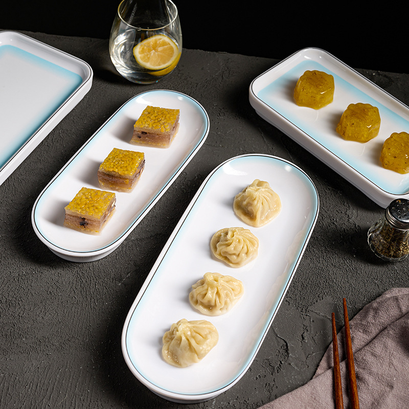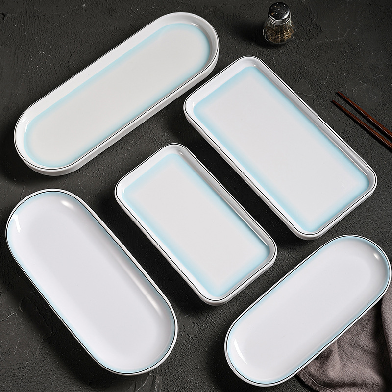 hot pot restaurant long plate melamine dish rectangular plate high-end restaurant hotel commercial barbecue plate imitation porcelain tableware wholesale