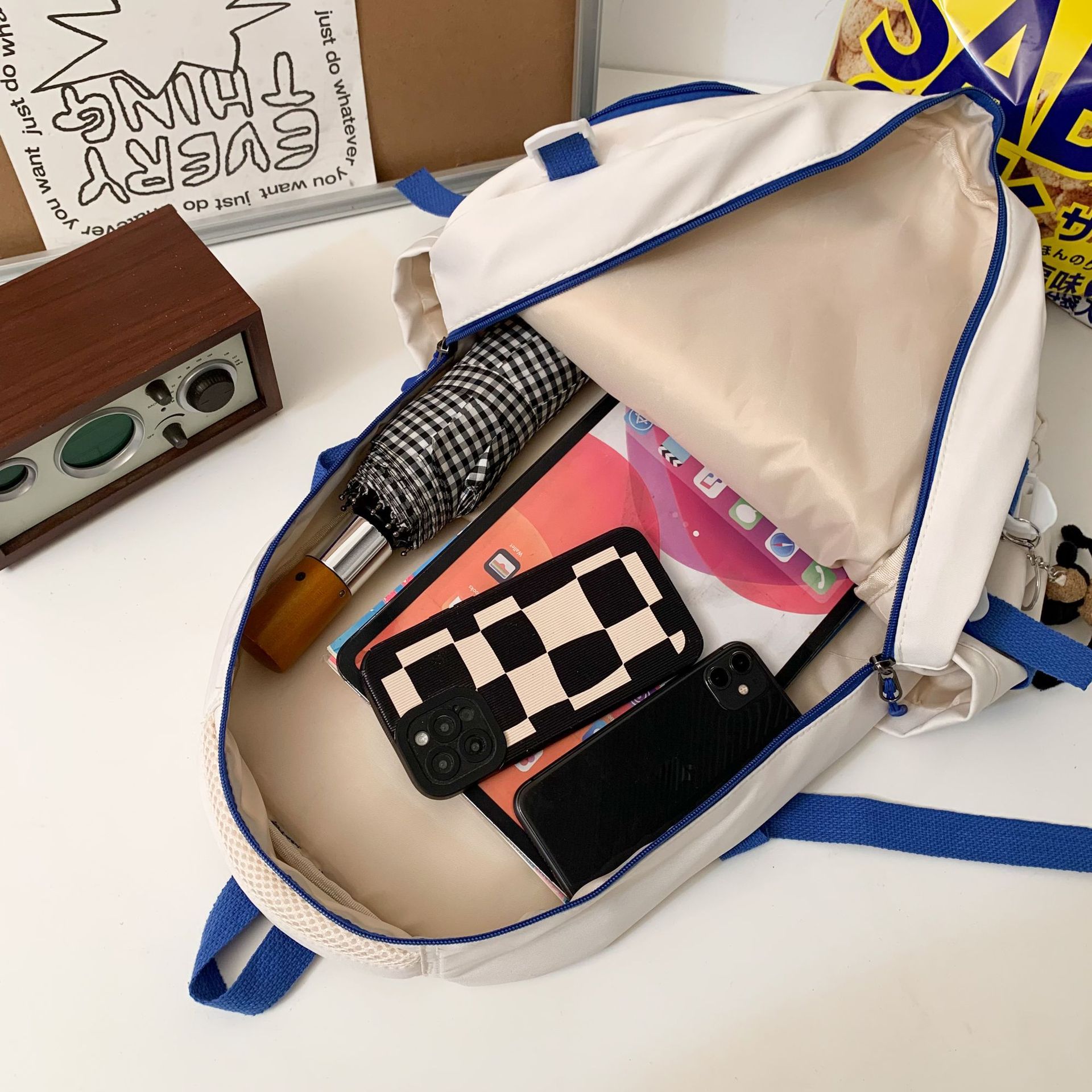 upgraded version white with blue (single bag + pendant)