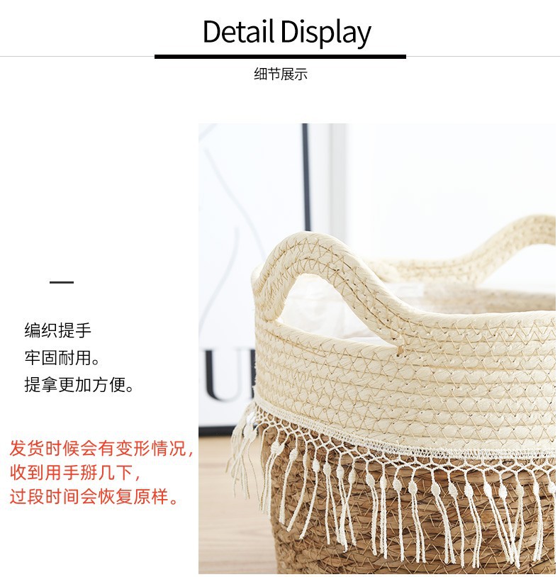 straw tassel flower pot-gray small size