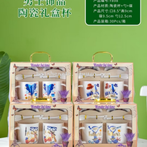 Fine ceramic cups in gift box set, 2 cups with 2 lids and 2 spoons in a gift box set. A box contains 30 boxes, with numerous patterns. Welcome to consult, wechat and mobile phone are the same number: 13867928156.