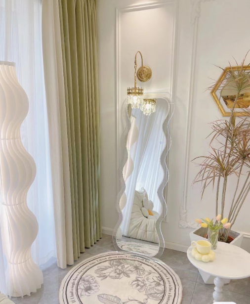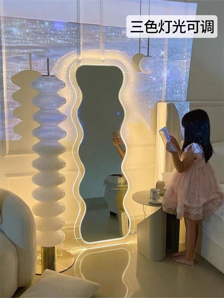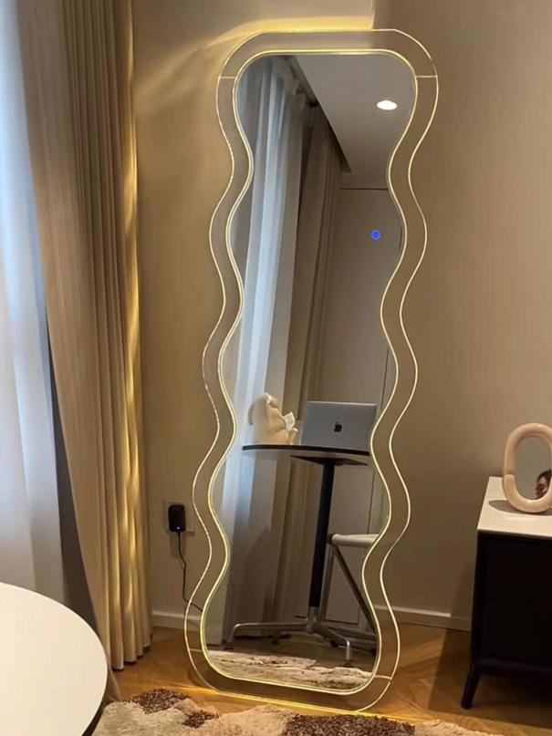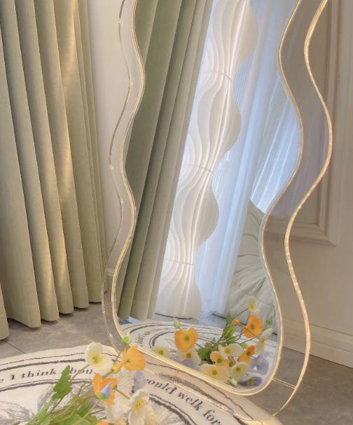full-body mirror online celebrity ins wave acrylic floor mirror design special-shaped home fitting mirror luminous art mirror