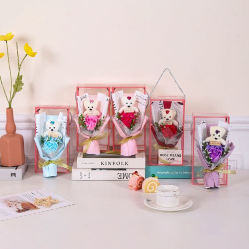 valentine's day little bear bouquet single soap flower rose sunflower artificial flower teacher's day mother's day creative gift 中文版