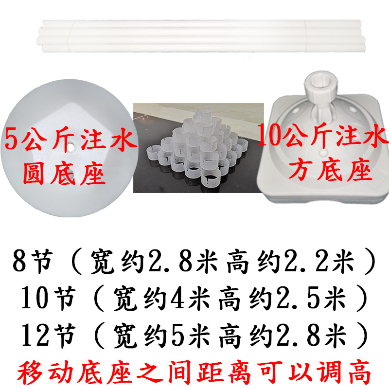10 poles plus two bases [2.5 m high and 4 m wide]]