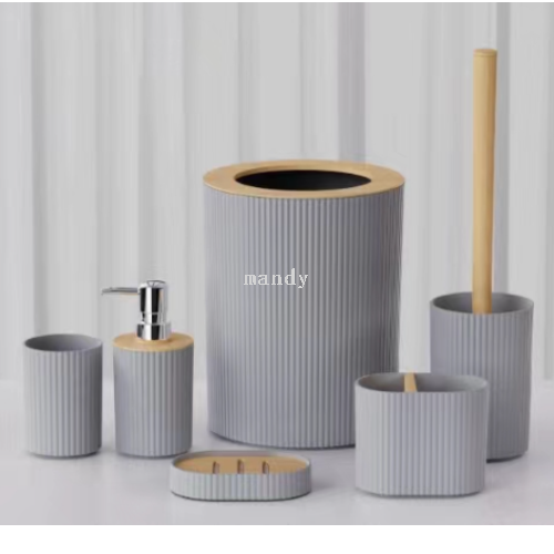 storage rack set trash can cup lotion bottle soap liquid bottle toilet brush soap dish bathroom wash six-piece set 中文版