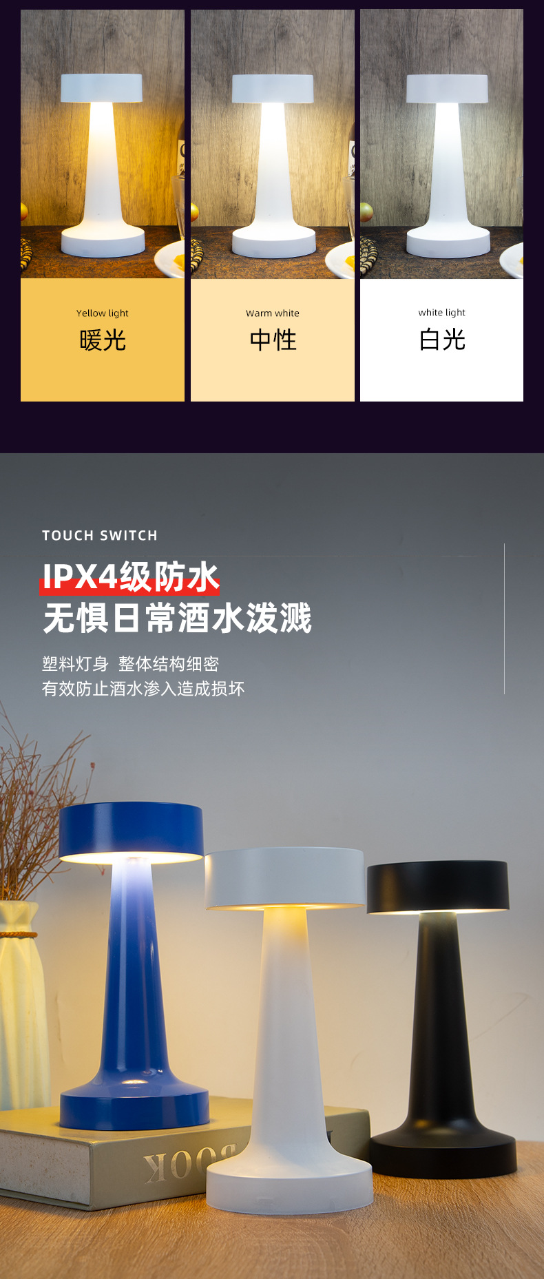 cross-border e-commerce table lamp acrylic night light atmosphere light rechargeable bar coffee restaurant decorative lamp atmosphere desk lamp 中文版