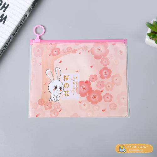 Product Name: Ins Girlheart Pink Rabbit Finger Ring Zipper File Bag Fresh and Clean Student Organizer Stationery Pencil Bag