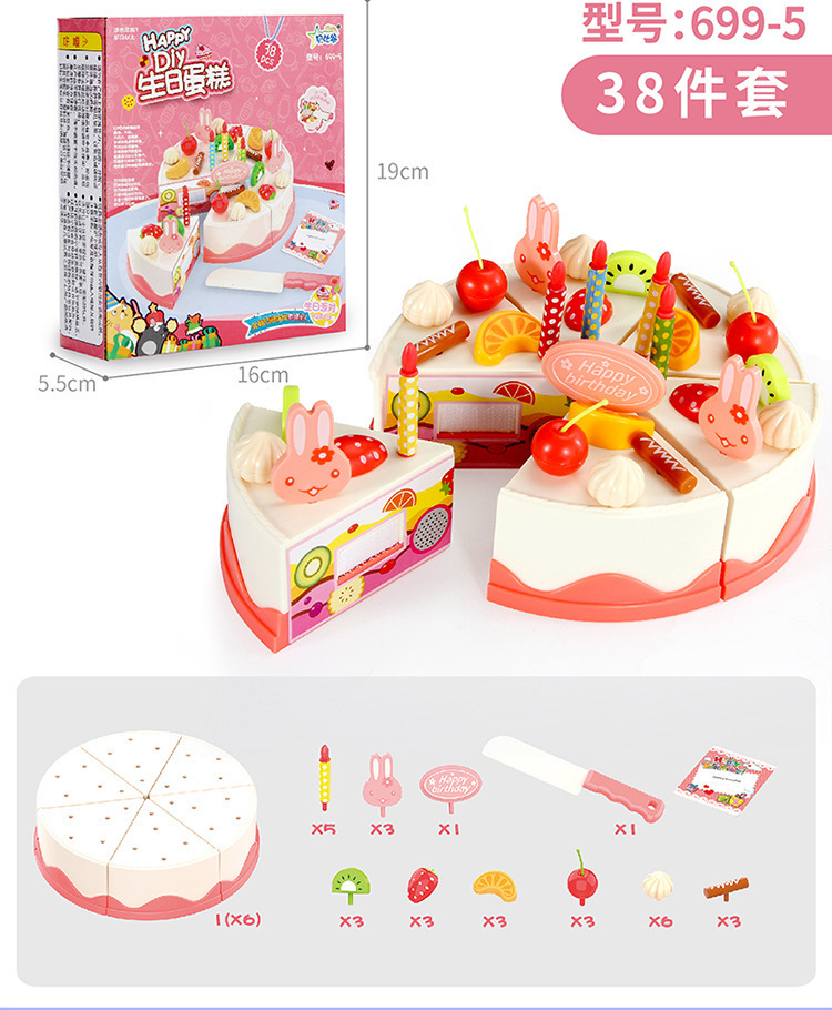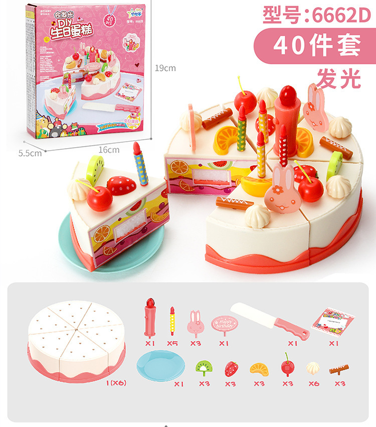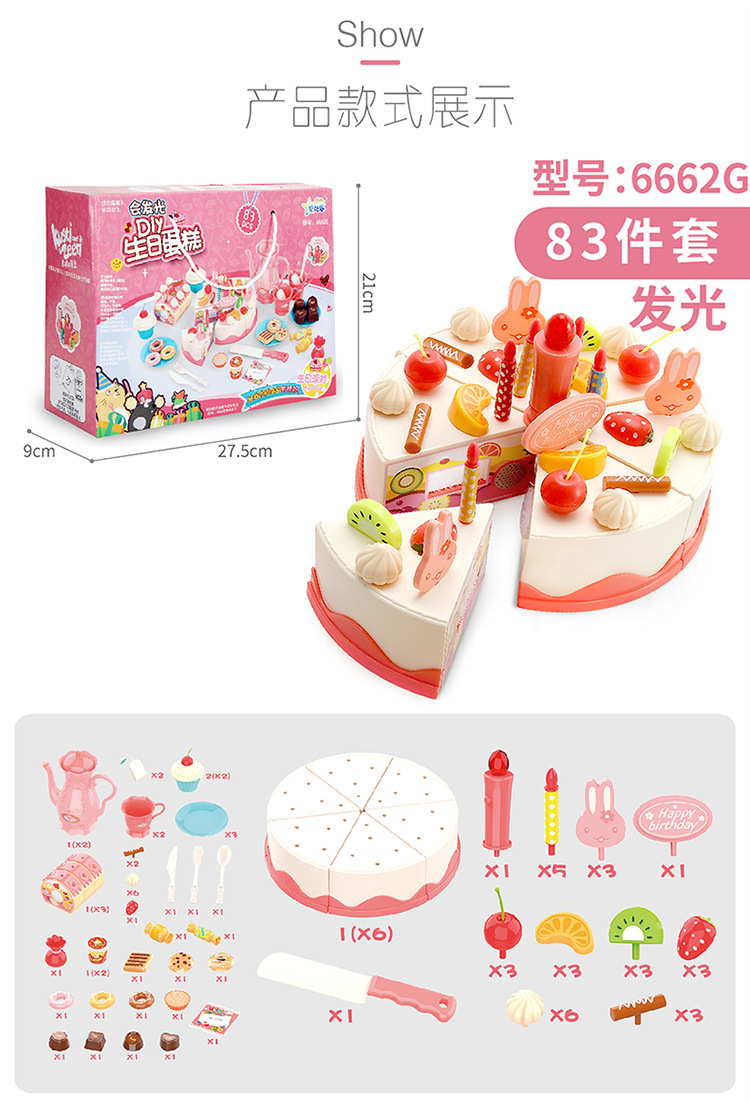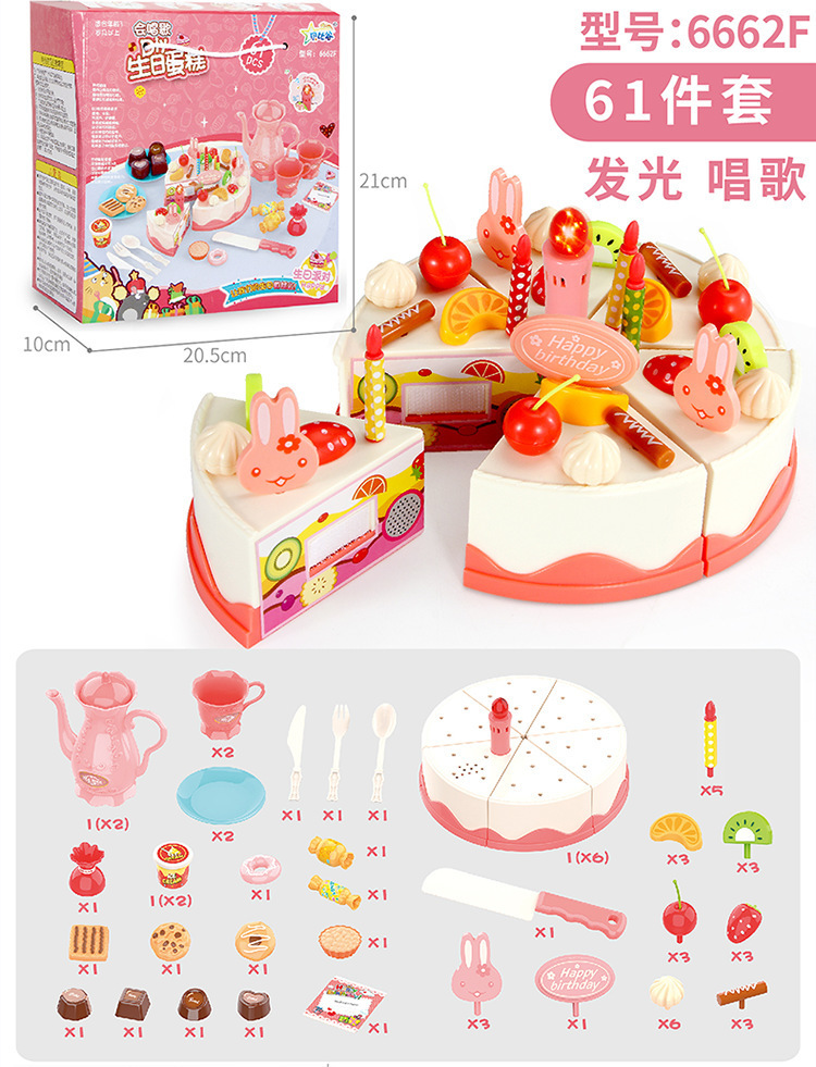 Bebigu Light Singing Happy Cut Birthday Cake Children Play House Toys Afternoon Tea Dessert Slicer