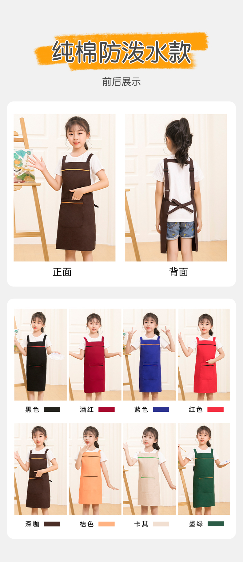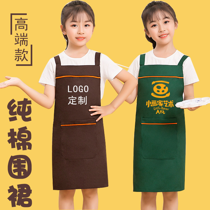 children's waterproof pure cotton painting clothes printing kindergarten baking art overclothes children's advertising apron logo