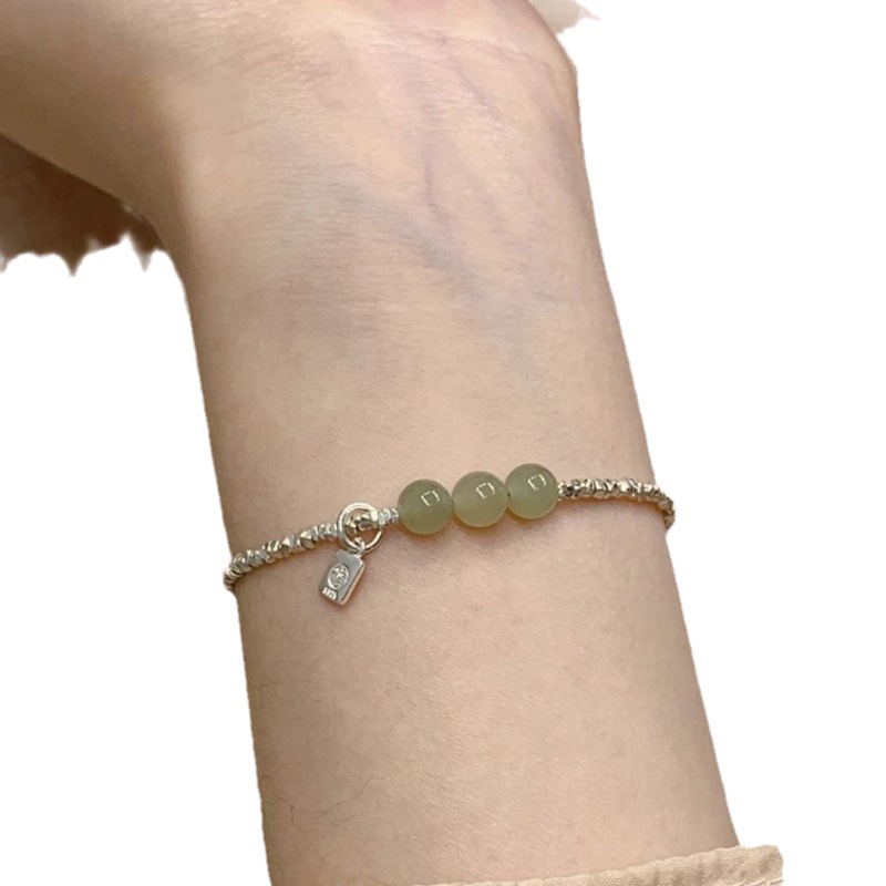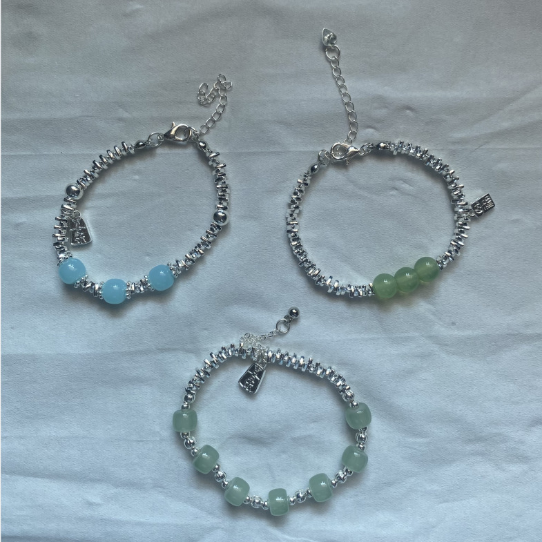 three beads broken silver bracelet