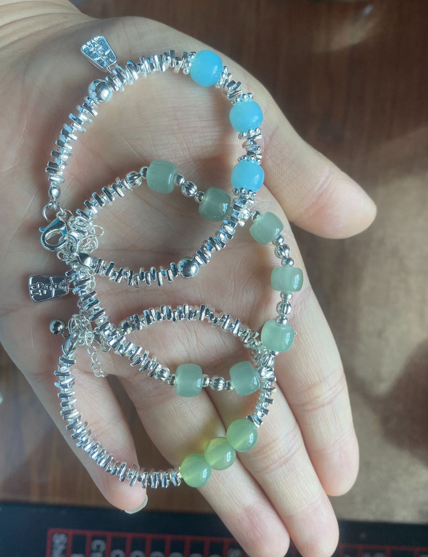 three broken beads broken silver bracelet
