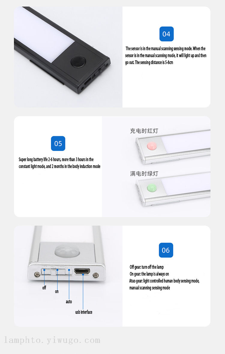 downlight wall lamp solar spotlight led induction lamp cabinet light night light human body induction 中文版