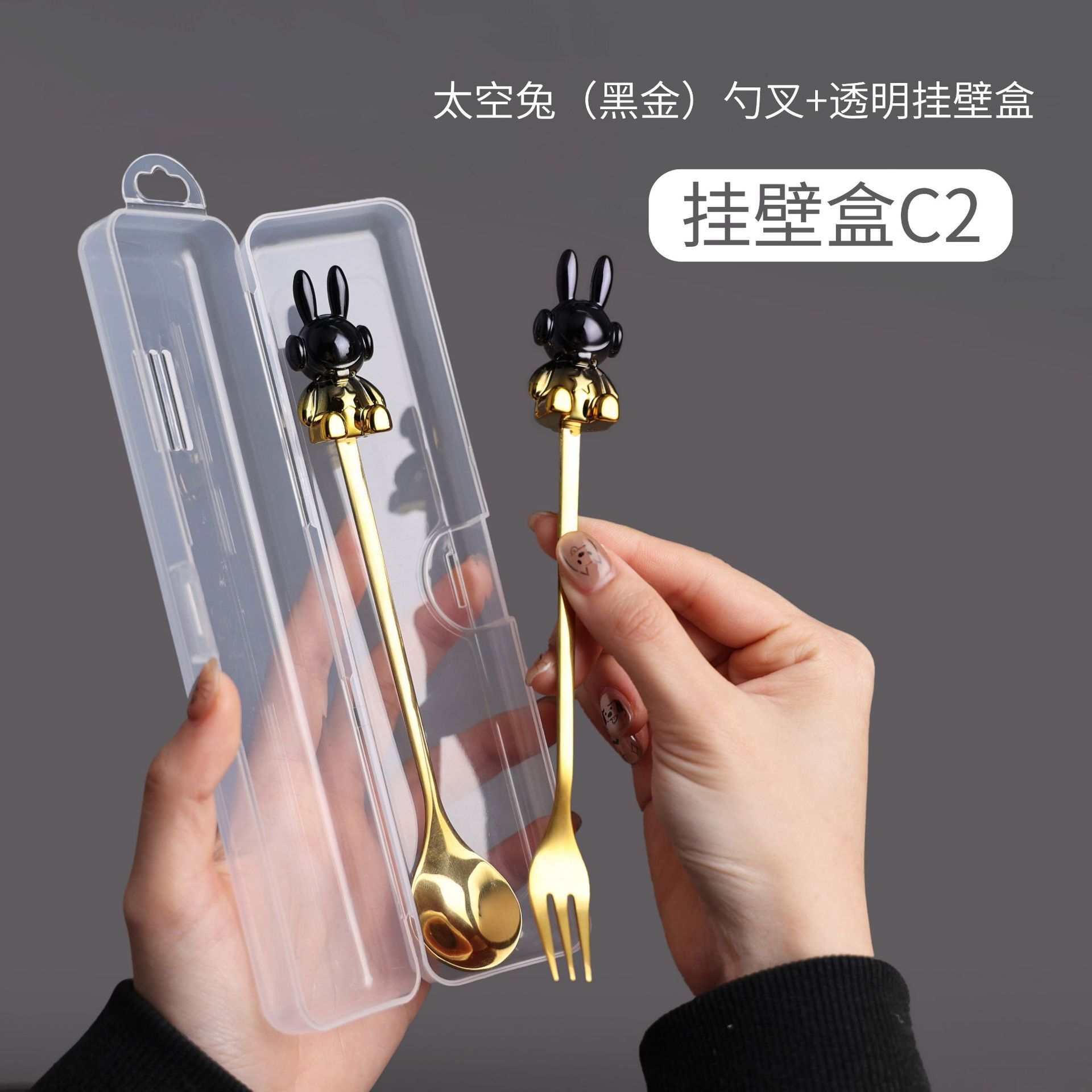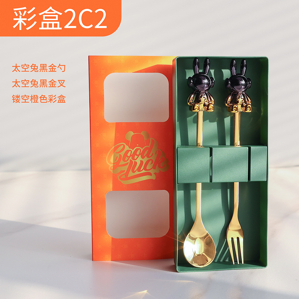 c2 black gold space rabbit spoon fork + color box