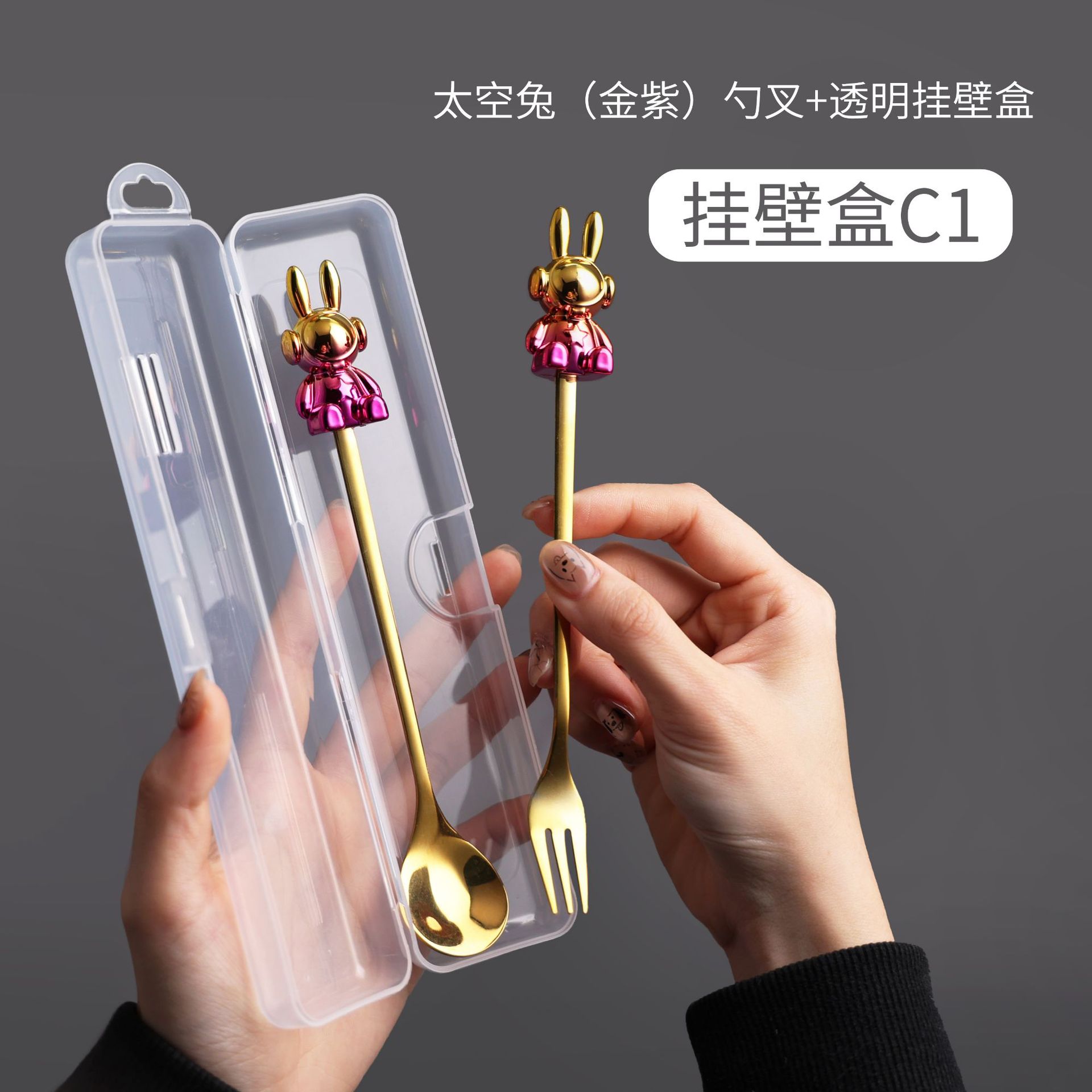 c1 golden purple space rabbit spoon fork + storage box