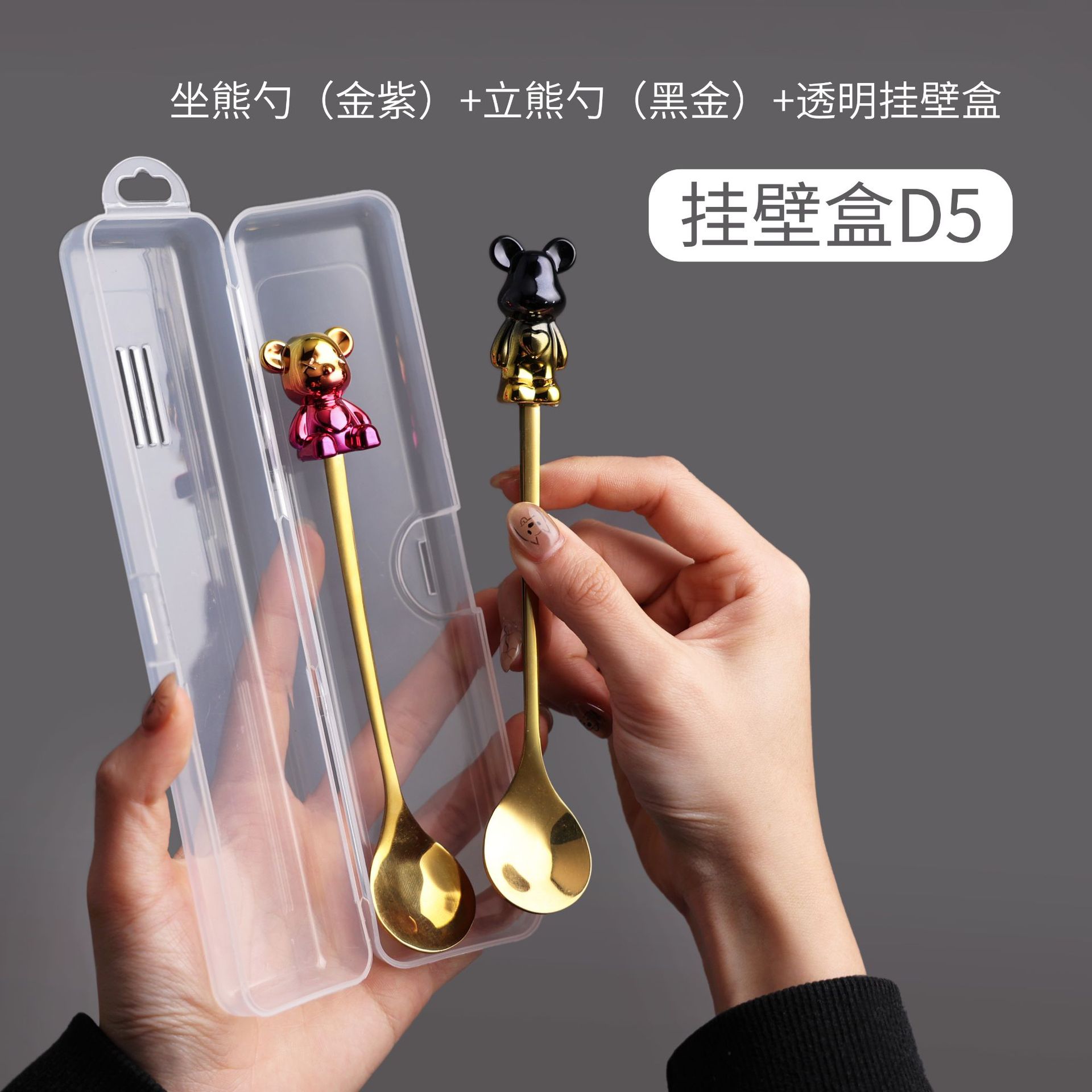d5 gold purple sitting bear spoon/black gold bear spoon + storage box
