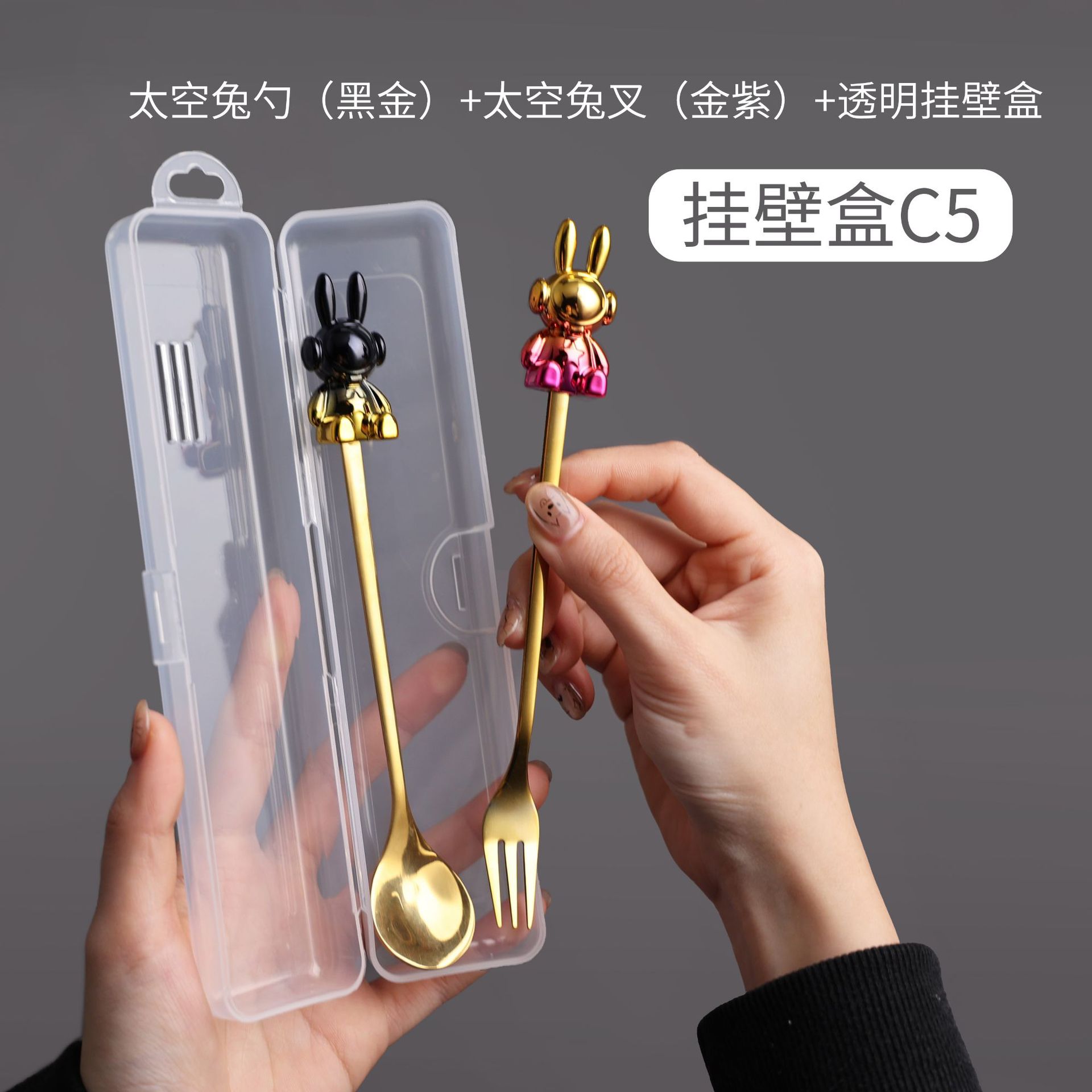 c5 black gold space rabbit spoon/gold purple space rabbit fork + storage box