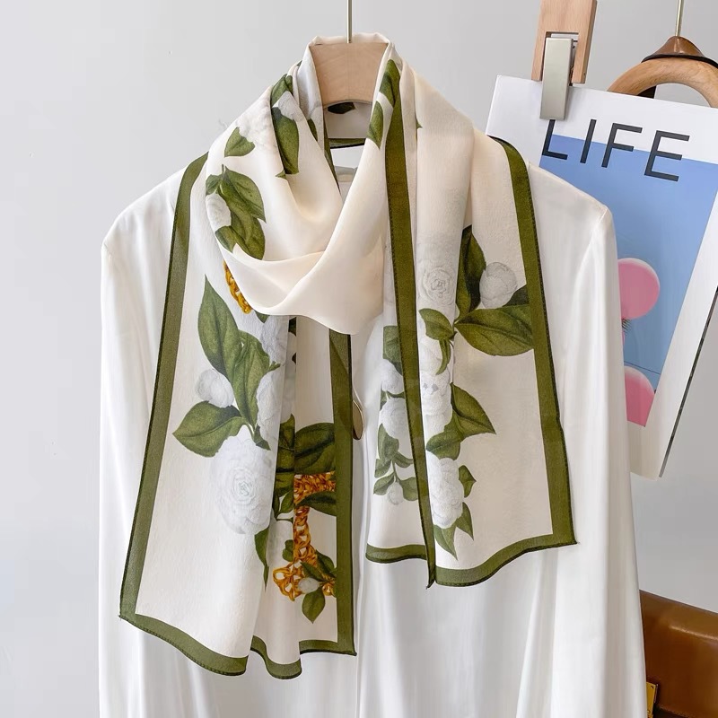 2024 new oil painting elegant silk crepe de chine spring and summer thin high-grade mulberry silk versatile fashion long silk scarf for women 中文版