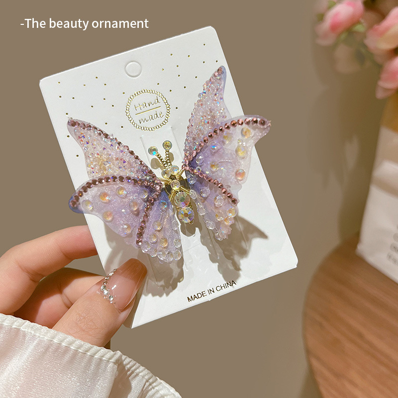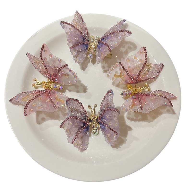 flower & rain falling butterfly barrettes [purple]]