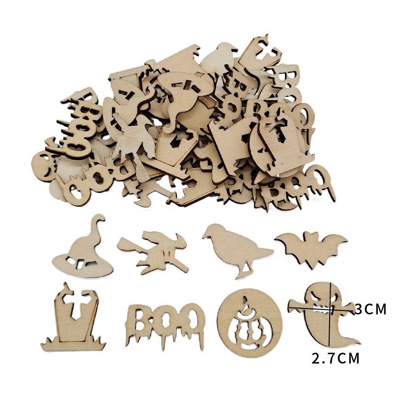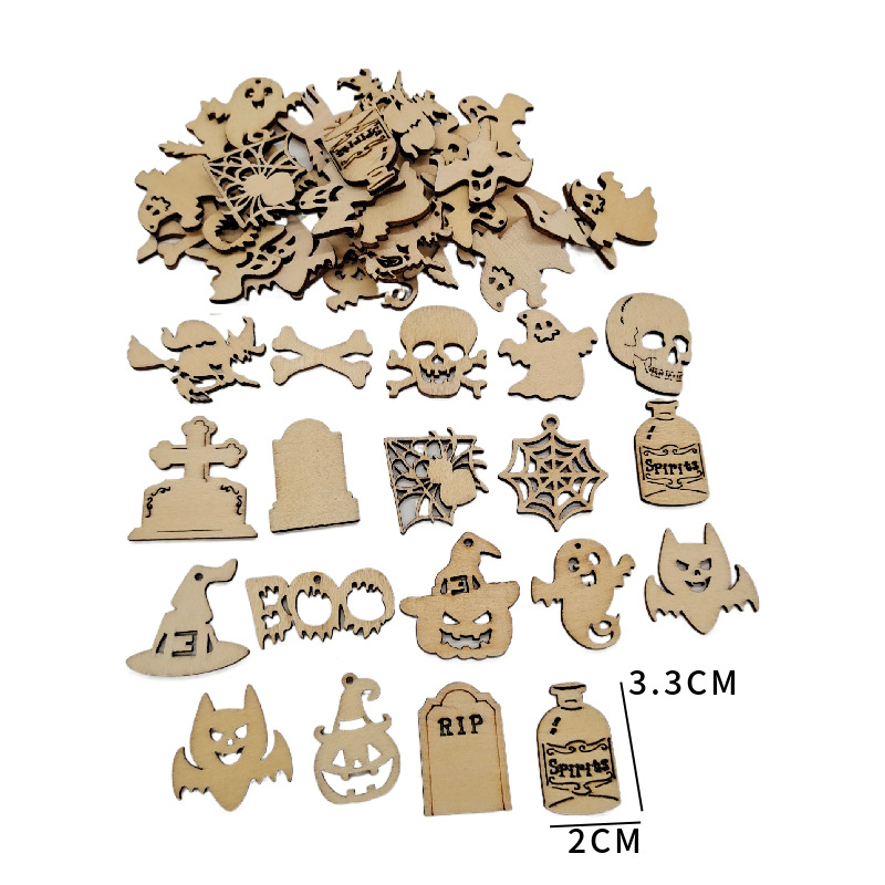 2020 New Halloween Wooden Craftwork Owl Skull Bat Pumpkin Home Decoration Props in Stock