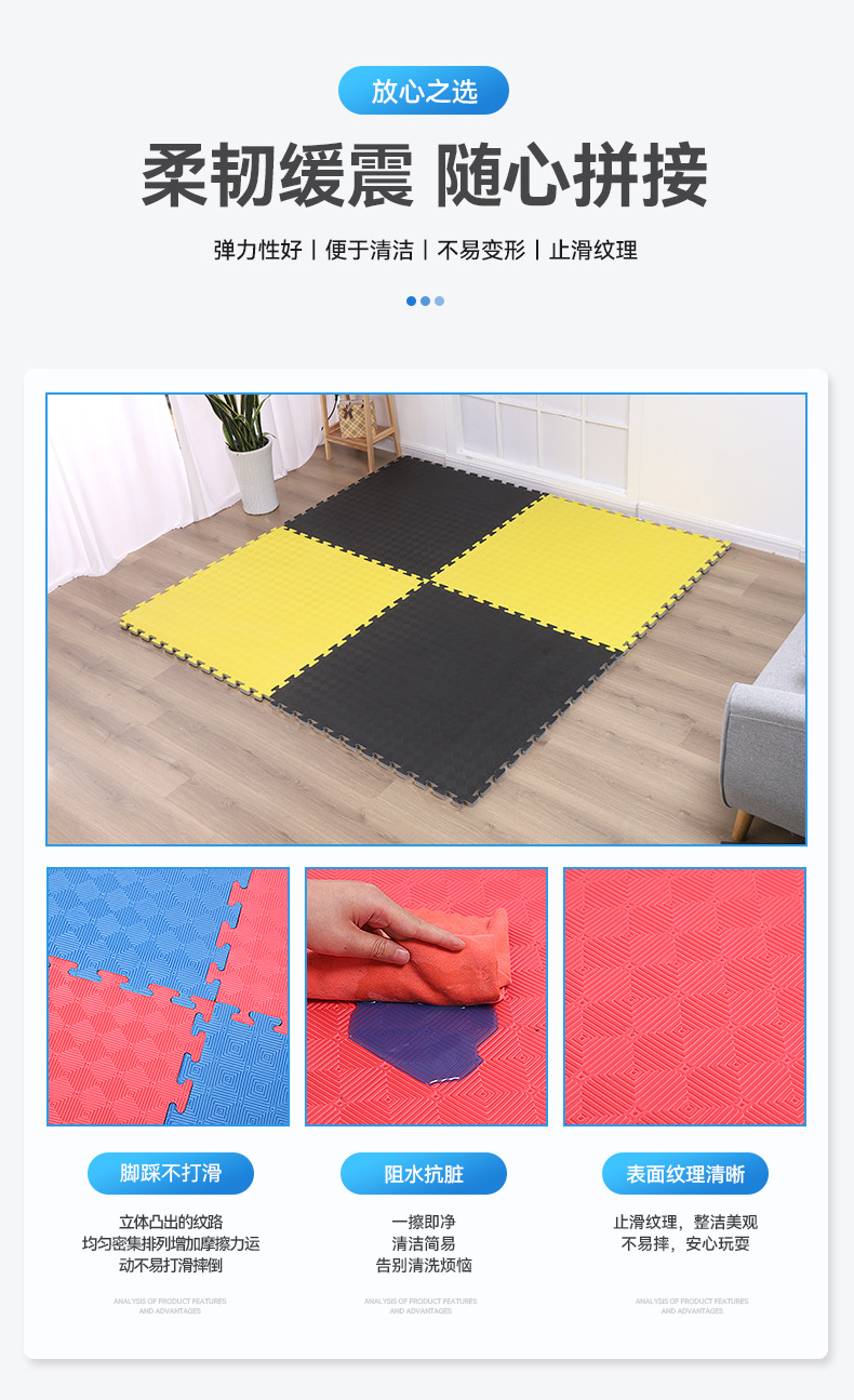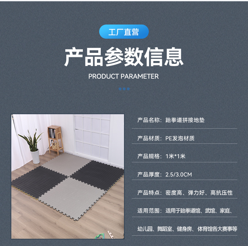 Taekwondo Mattress High Density Gym Foam Mat 1 M × 1 M Martial Arts Dance Training Non-Slip Falling-Resistant Mat 中文版