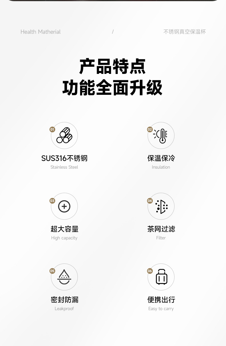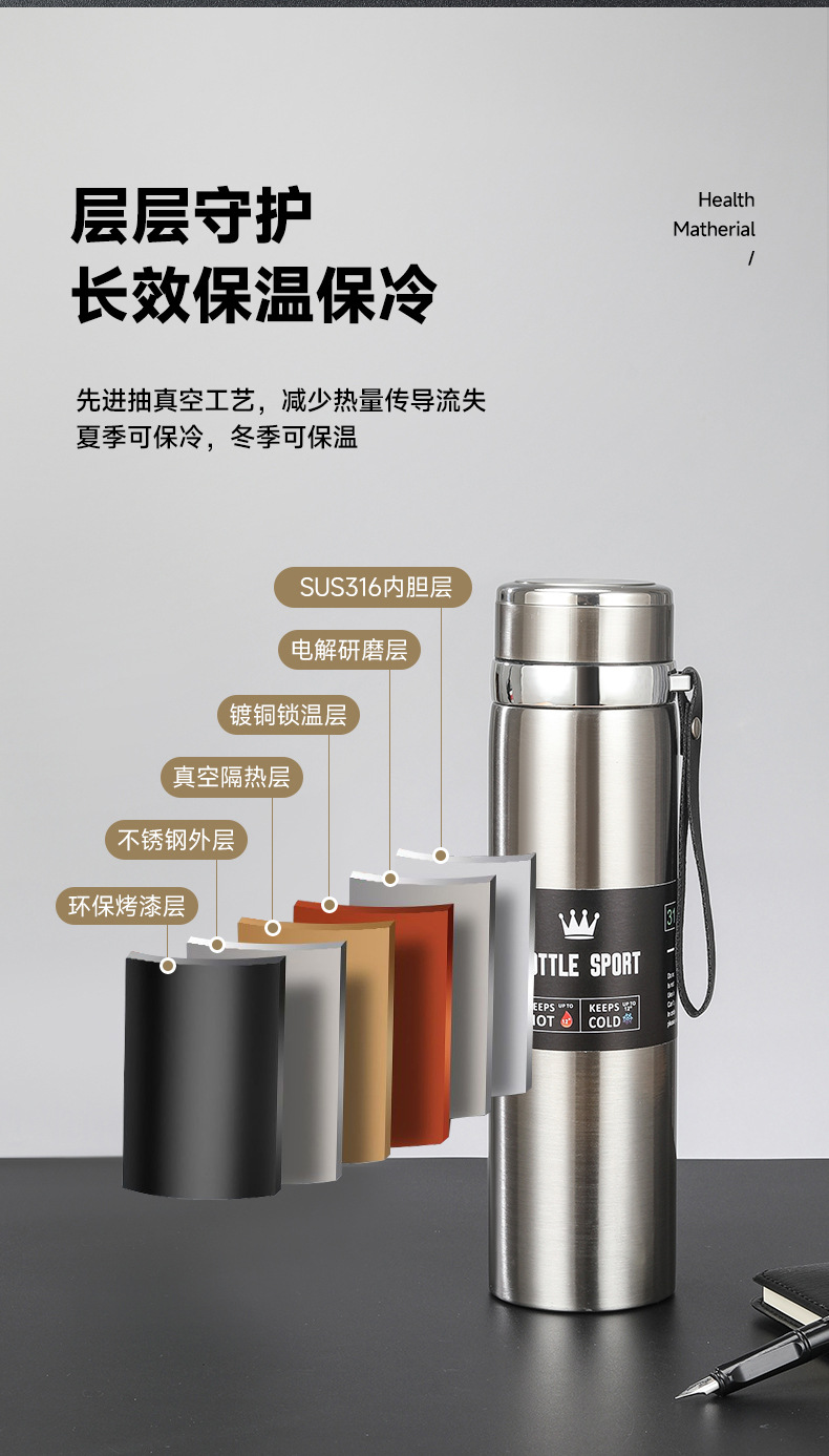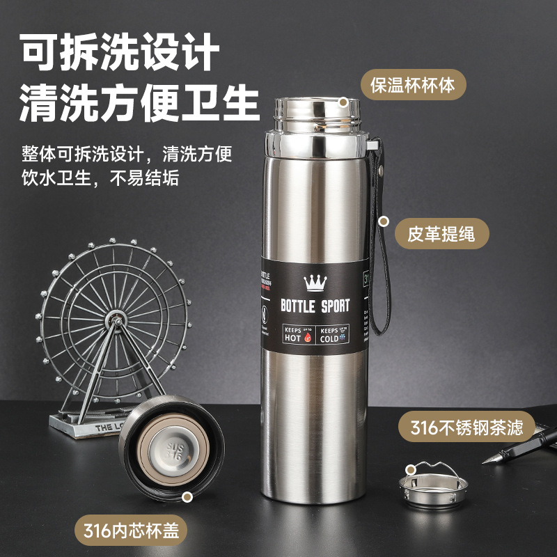 Stainless Steel Thermos Cup Men's Good-looking Tea Water Separation Tea Brewing Cup Outdoor Portable Large Capacity Sling Kettle
