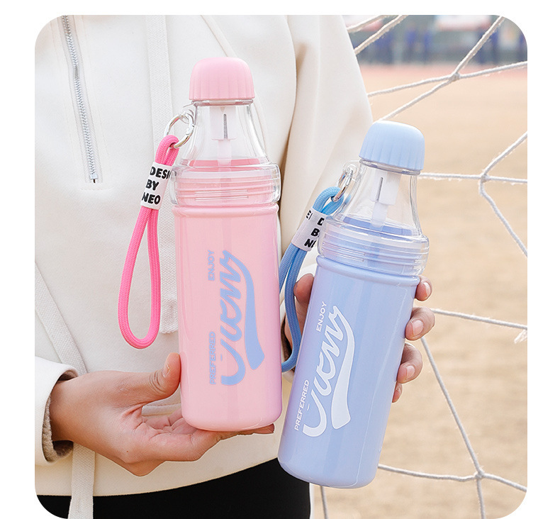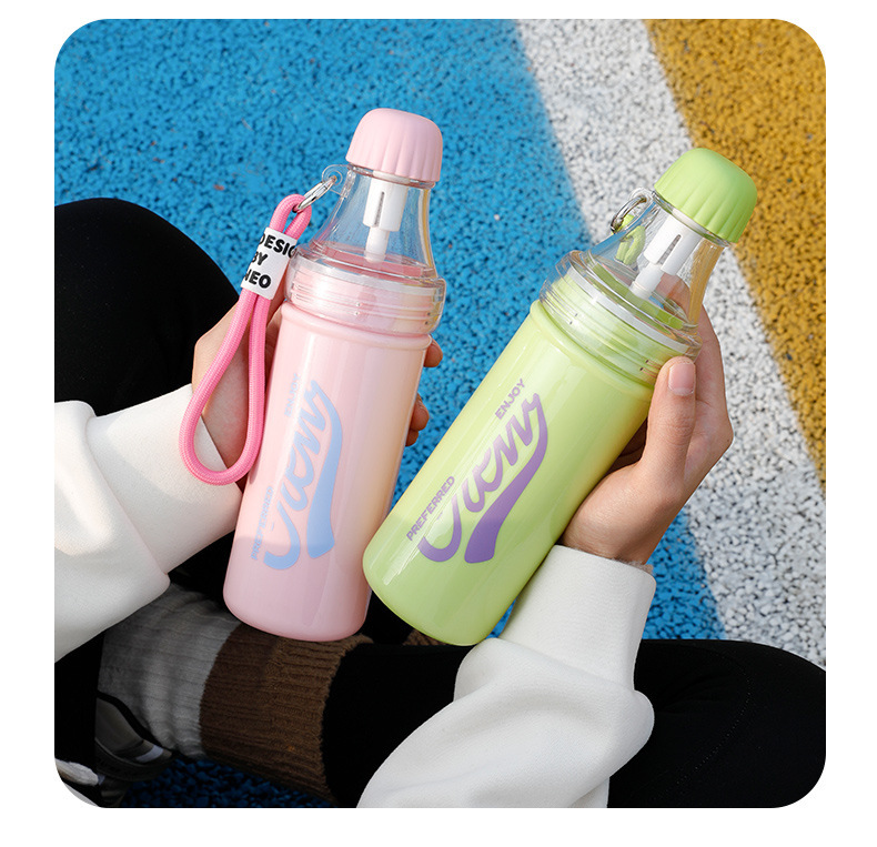 summer plastic water cup internet celebrity same style coke bottle removable cup leak-proof cup sports water bottle belt rope holding cup