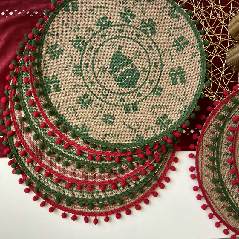 jute placemat christmas style 6 red (fur ball type)