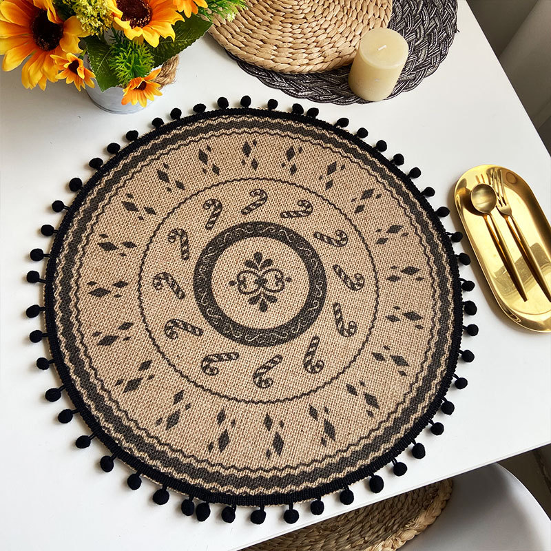 jute placemat christmas model 2 black (fur ball)
