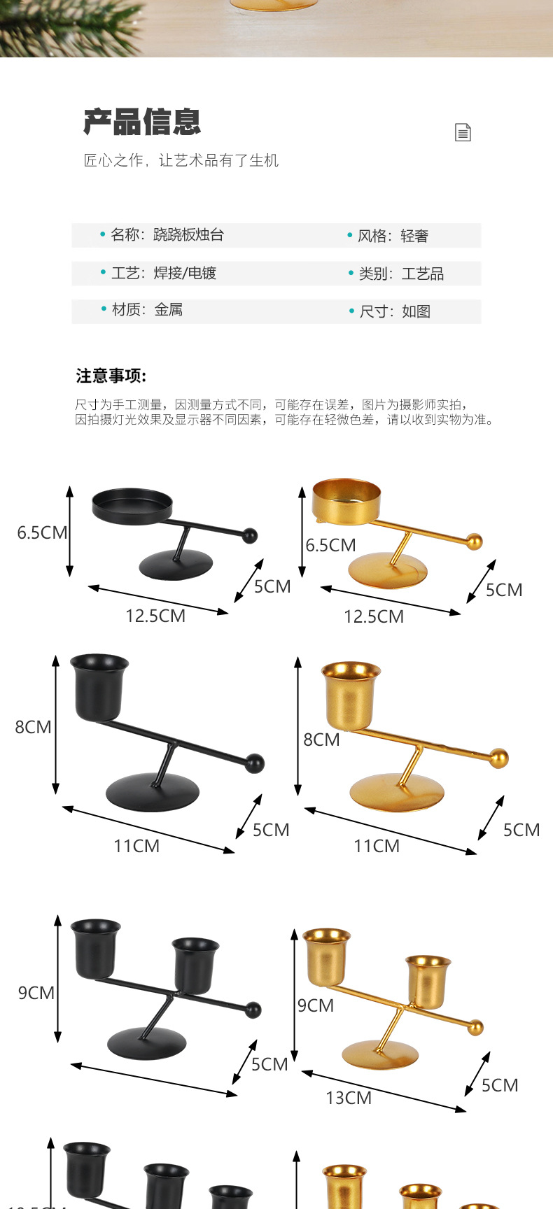 foreign trade simple multi-head candlestick amazon dining-table decoration dinner party shooting props golden iron candlestick 中文版