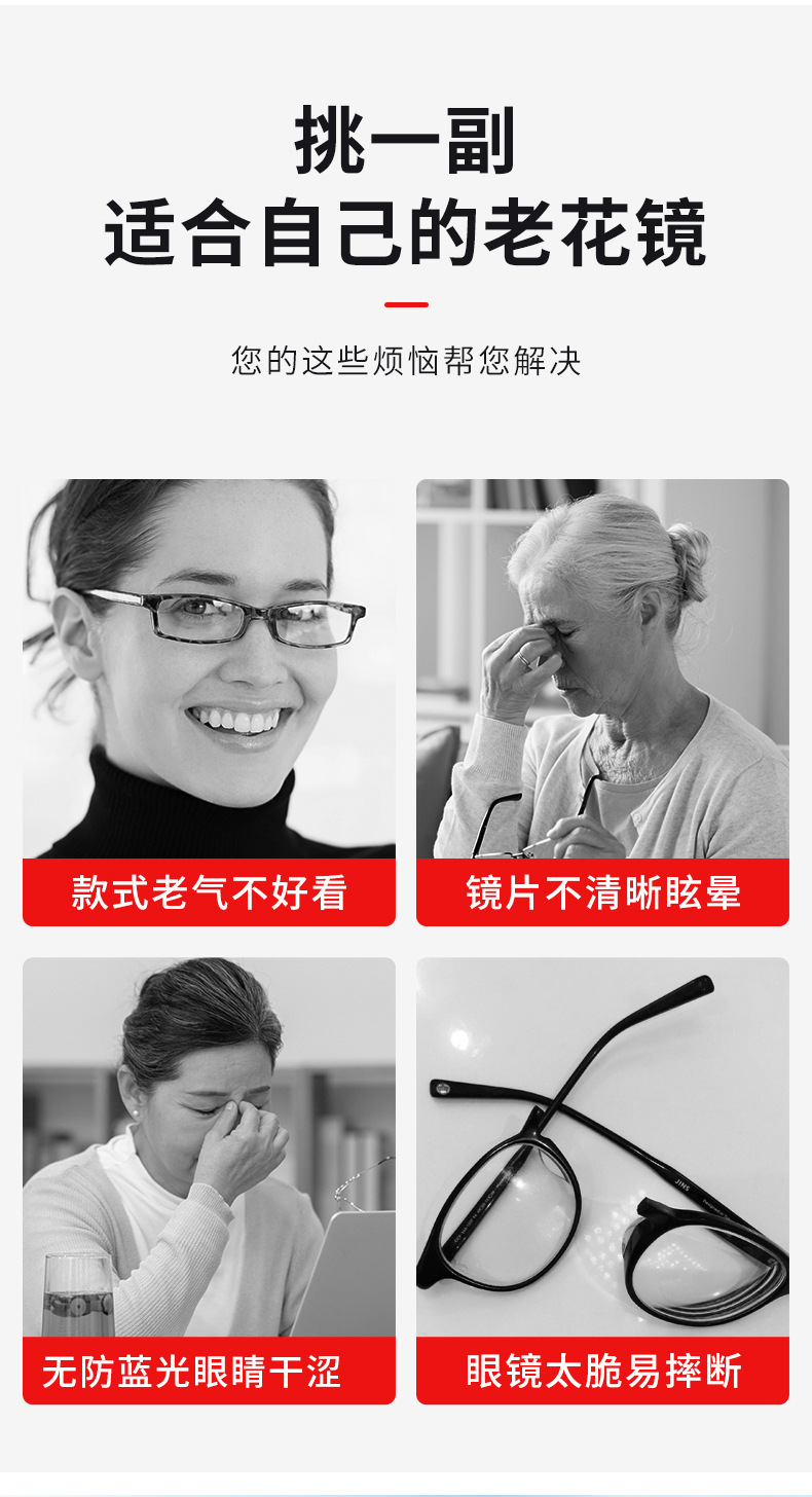 Middle-Aged and Elderly Presbyopic Glasses Running Rivers and Lakes Presbyopic Glasses Wholesale Anti-Blue Light Smart Zoom Multifunctional Presbyopic Glasses