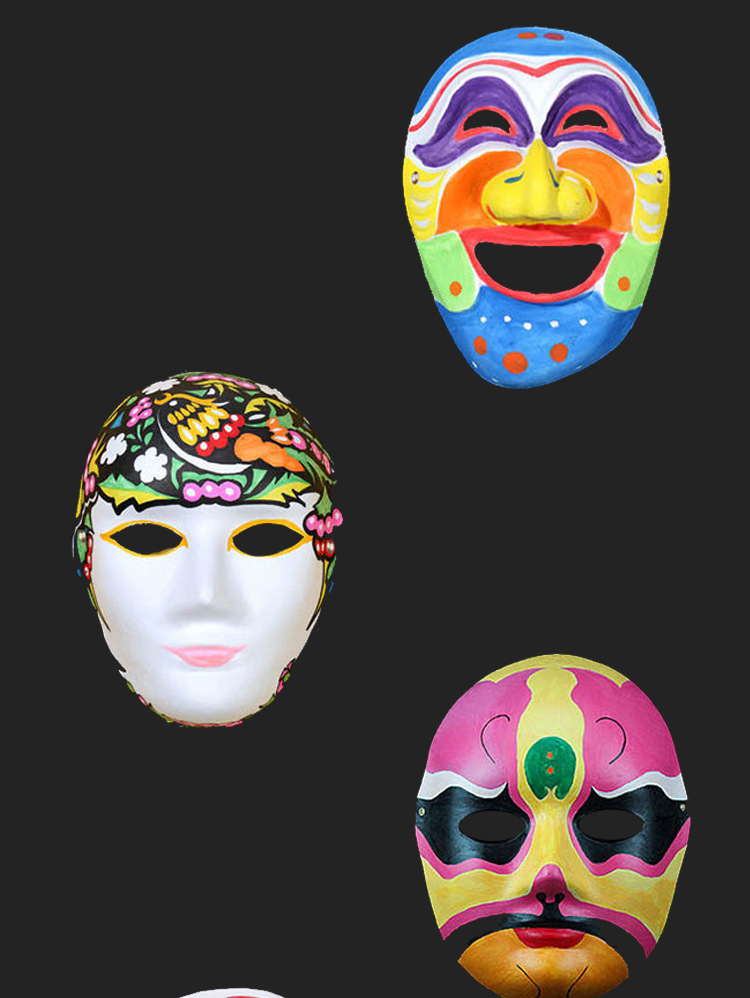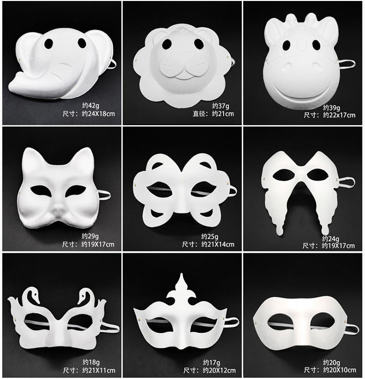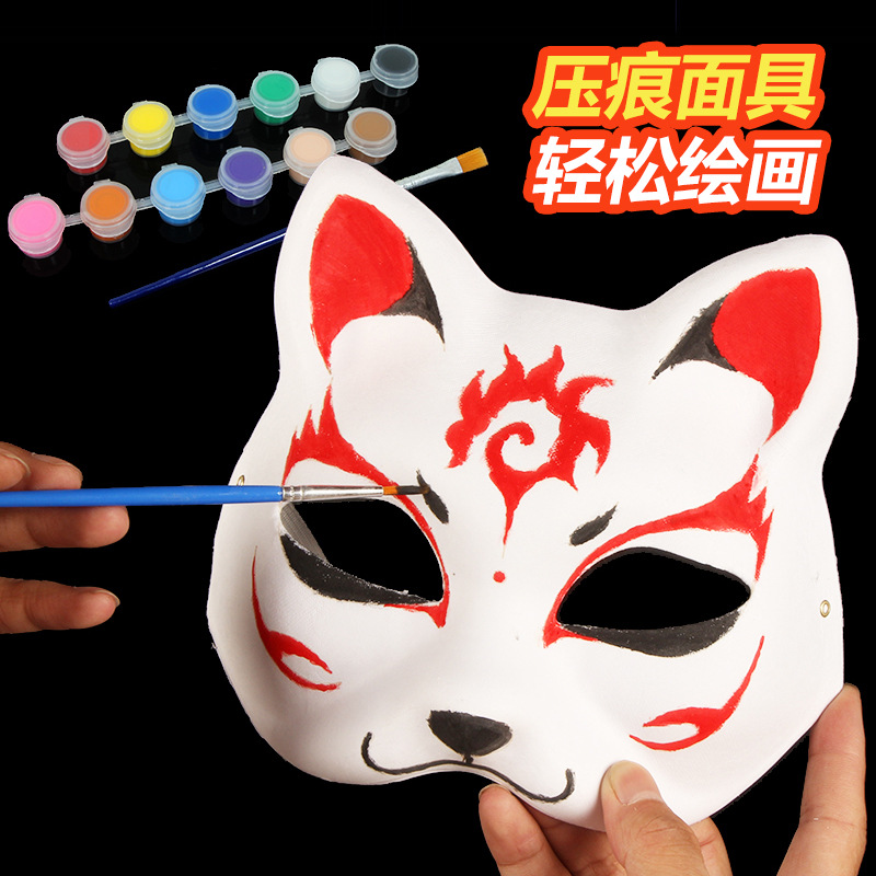 DIY Pulp Cat Face Mask Children's Handmade Painting Peking Opera Facial Makeup Graffiti Fox Half Face Mask Elastic String