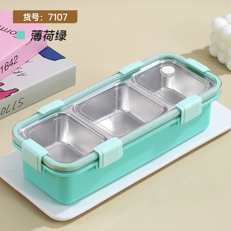 wx033827 light food stainless steel lunch box three grid 585ml(50/box mint green)