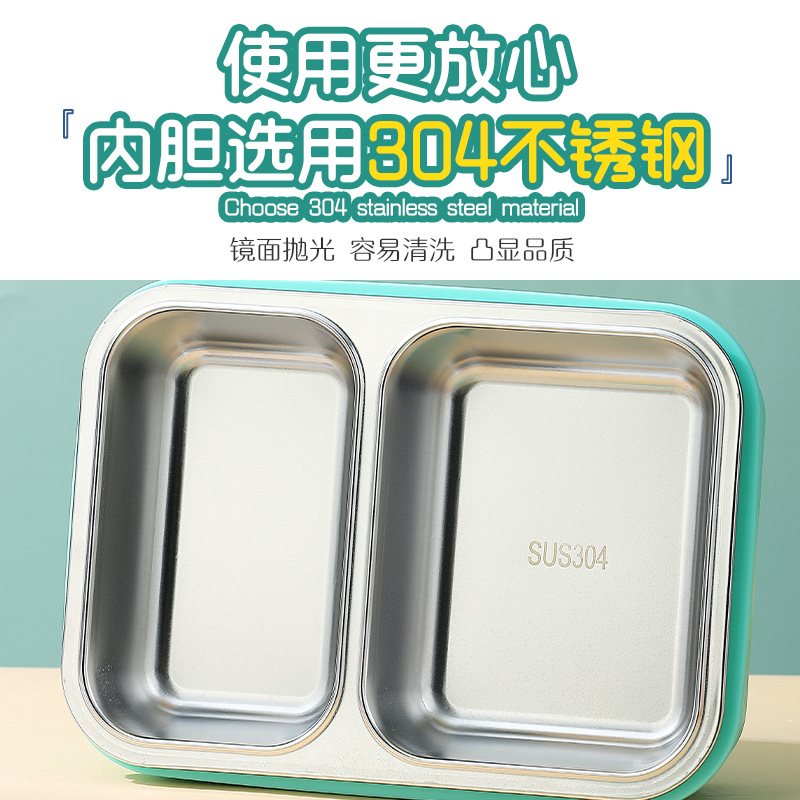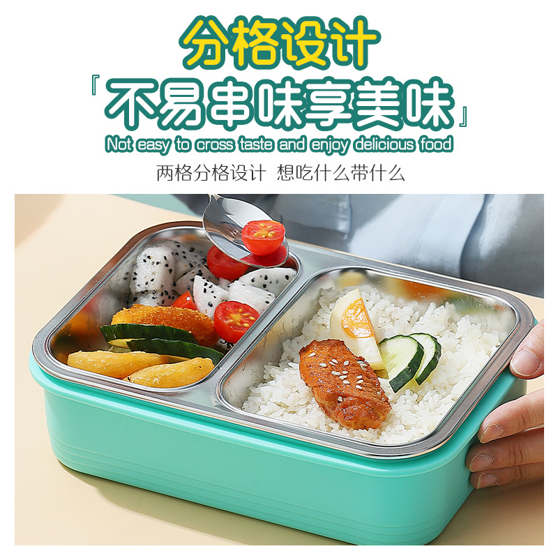 wx033331 2-grid non-odor stainless steel lunch box 700ml(48/box mint green)
