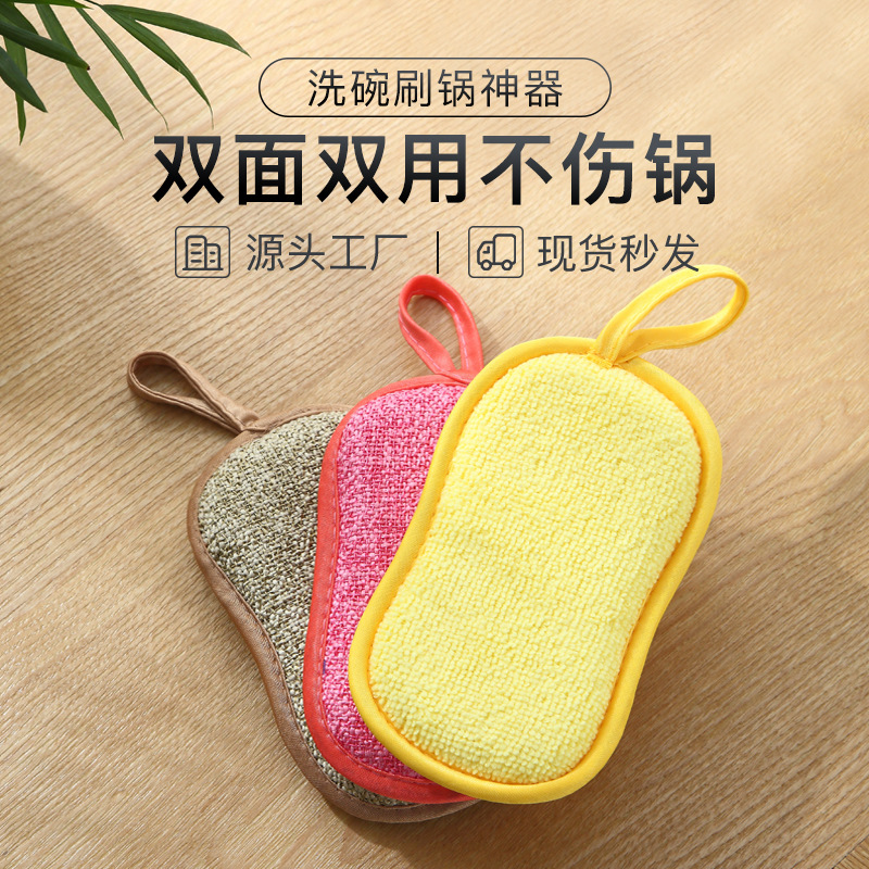 Cross-Border Amazon Double-Sided Spong Mop Dish Brush Pot Artifact Absorbent Kitchen Rag Microfiber Dish-Washing Sponge