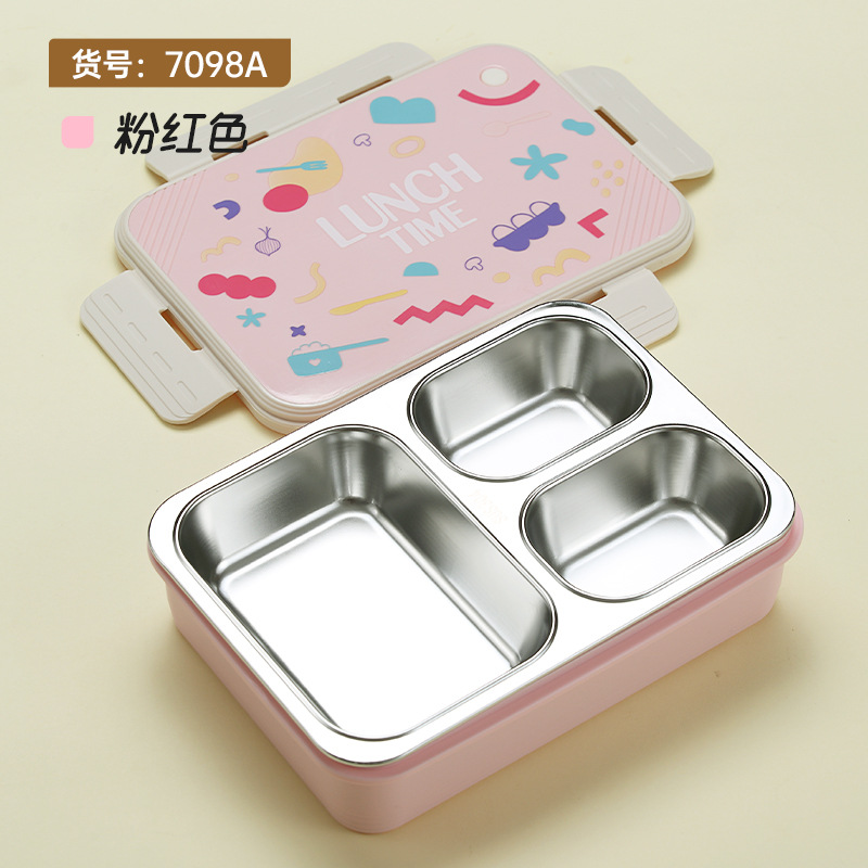 wx033915 compartment non-odor lunch box (three grid 850ml)(36/box pink