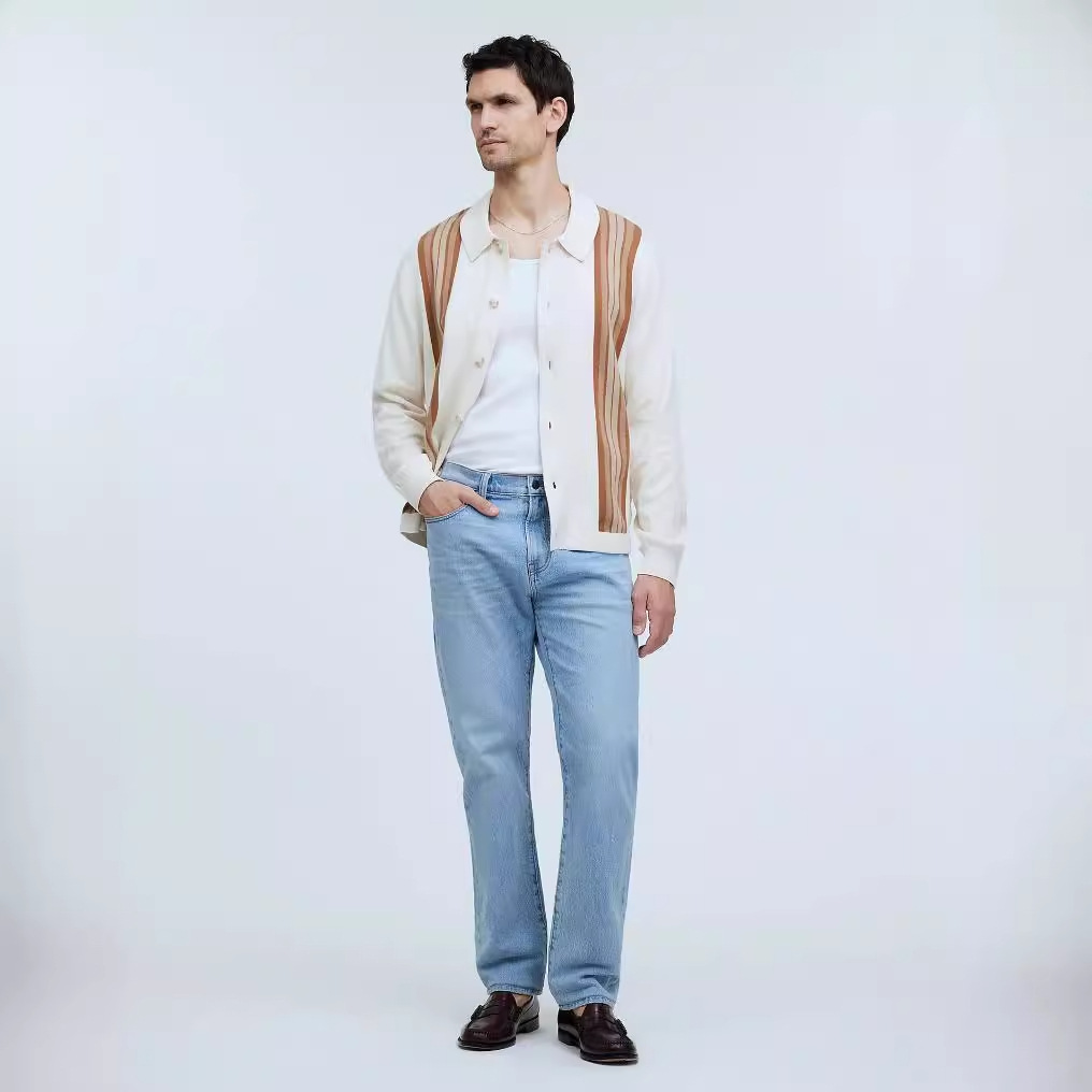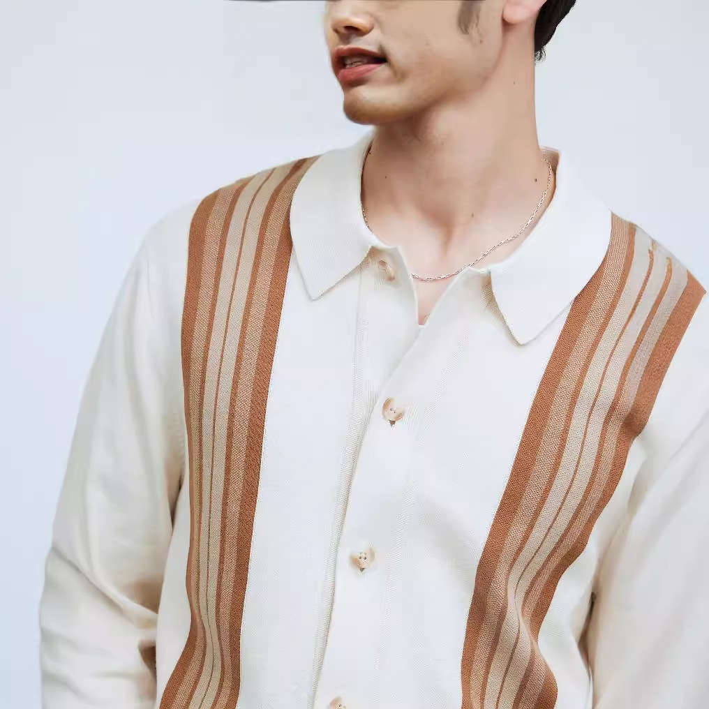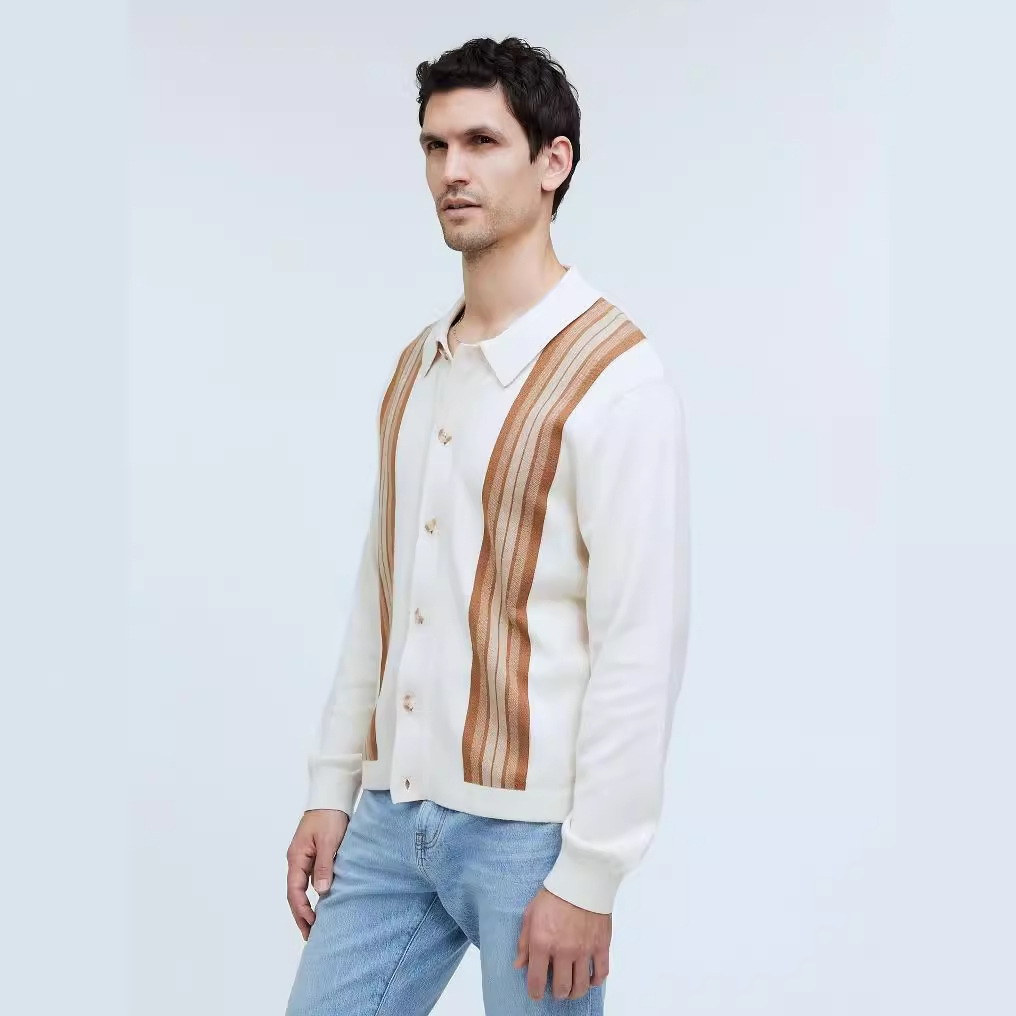 vscoo woolen factory new men's sweater youth fashion contrast color loose gradient striped knitted cardigan 中文版