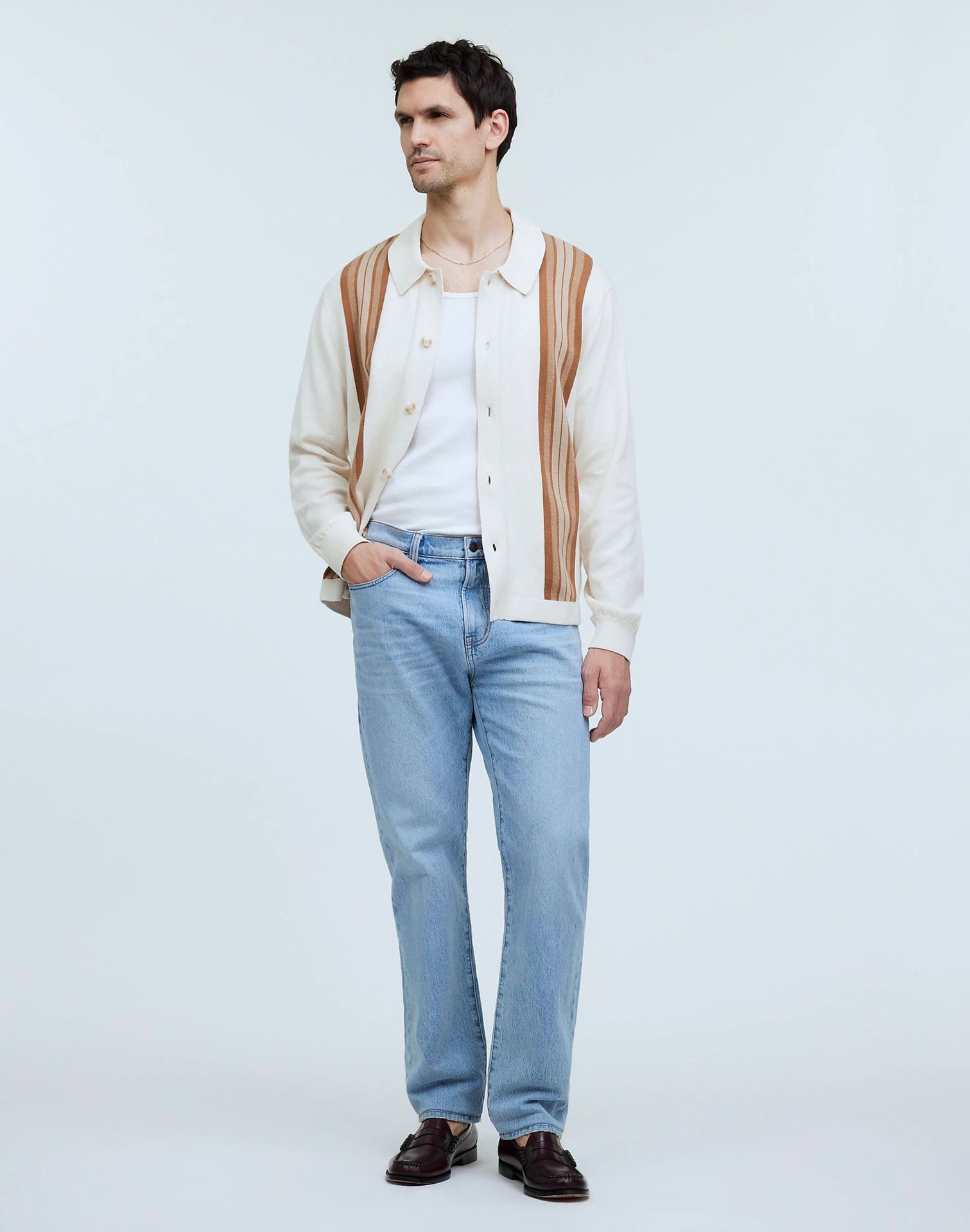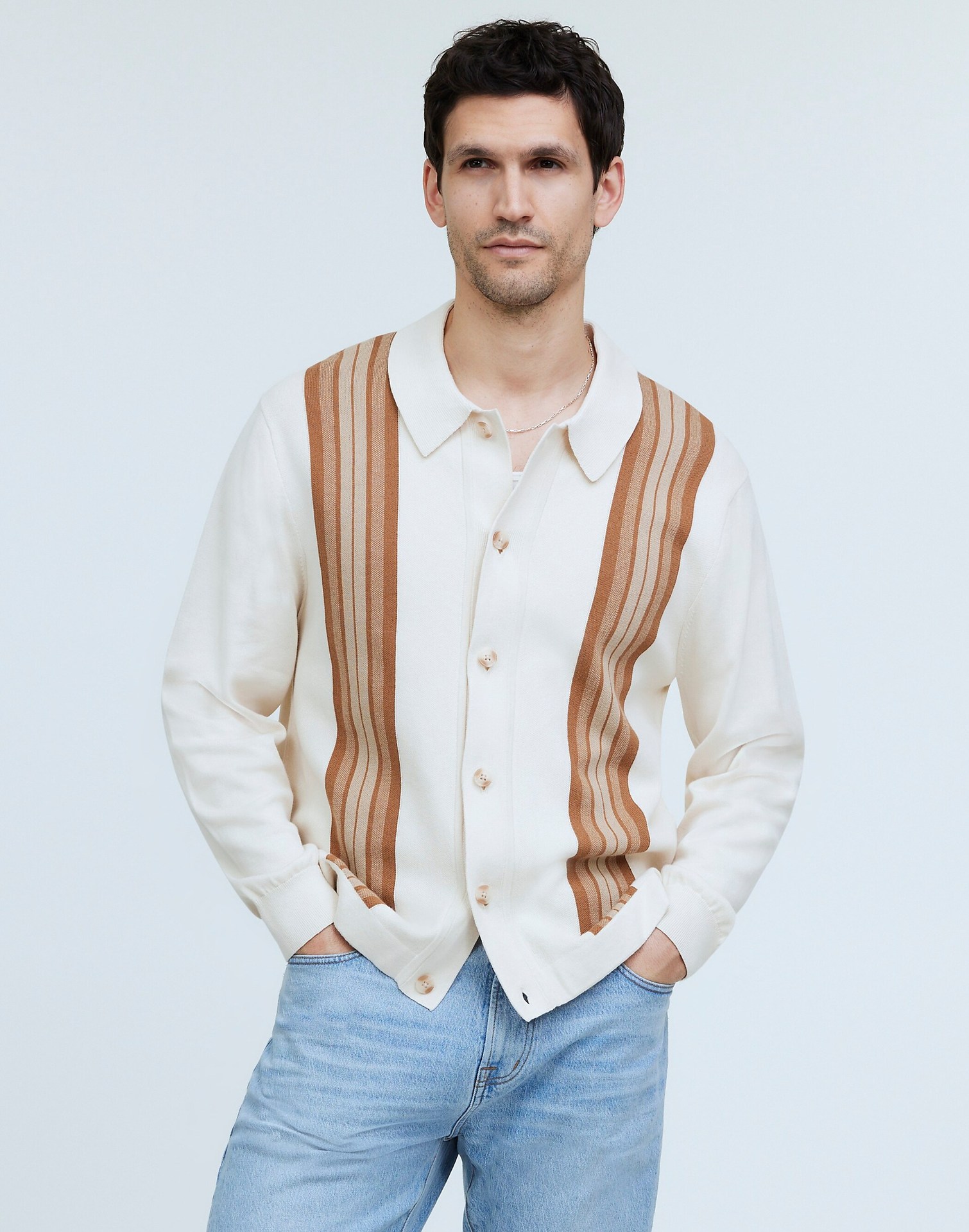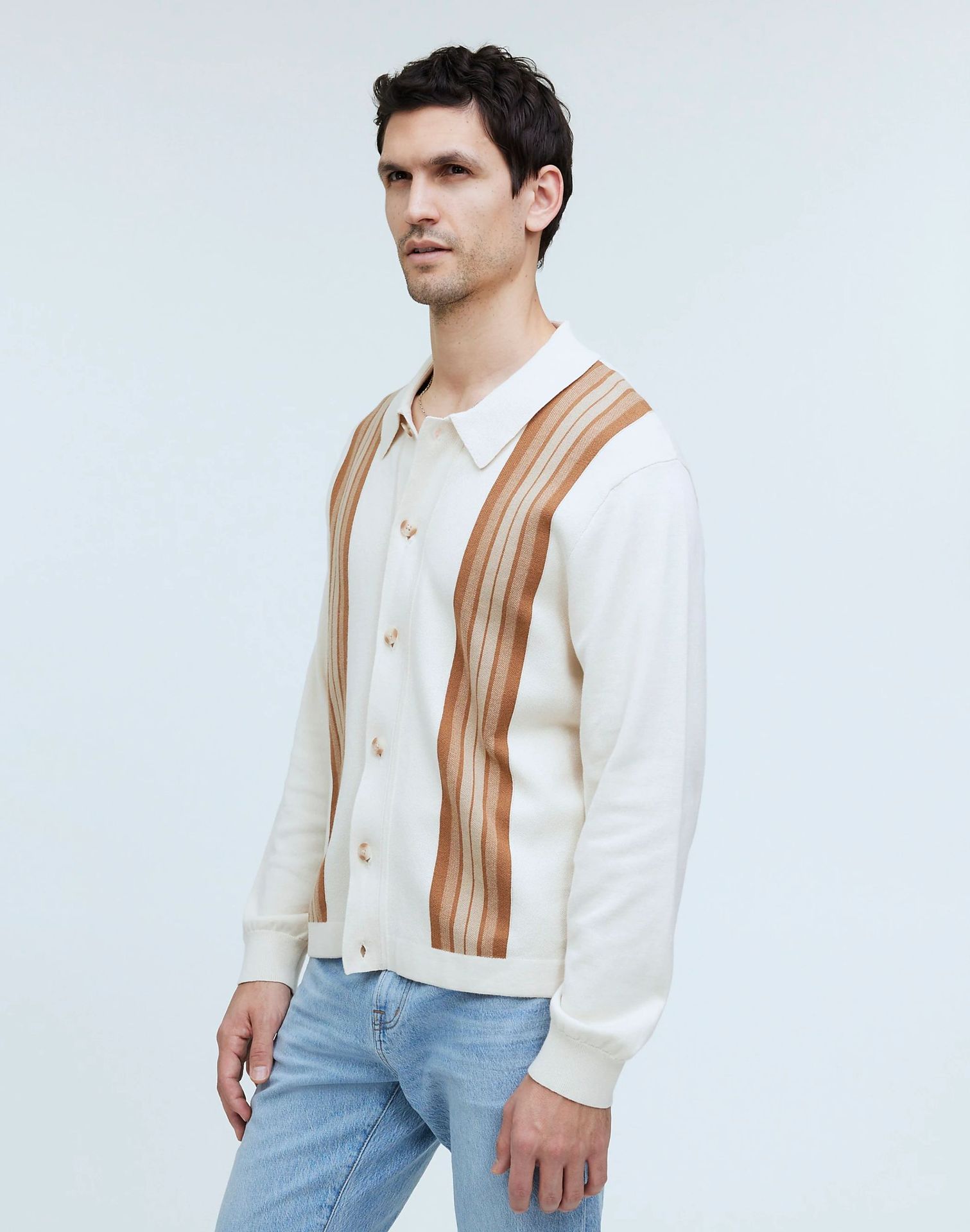 vscoo woolen factory new men's sweater youth fashion contrast color loose gradient striped knitted cardigan 中文版